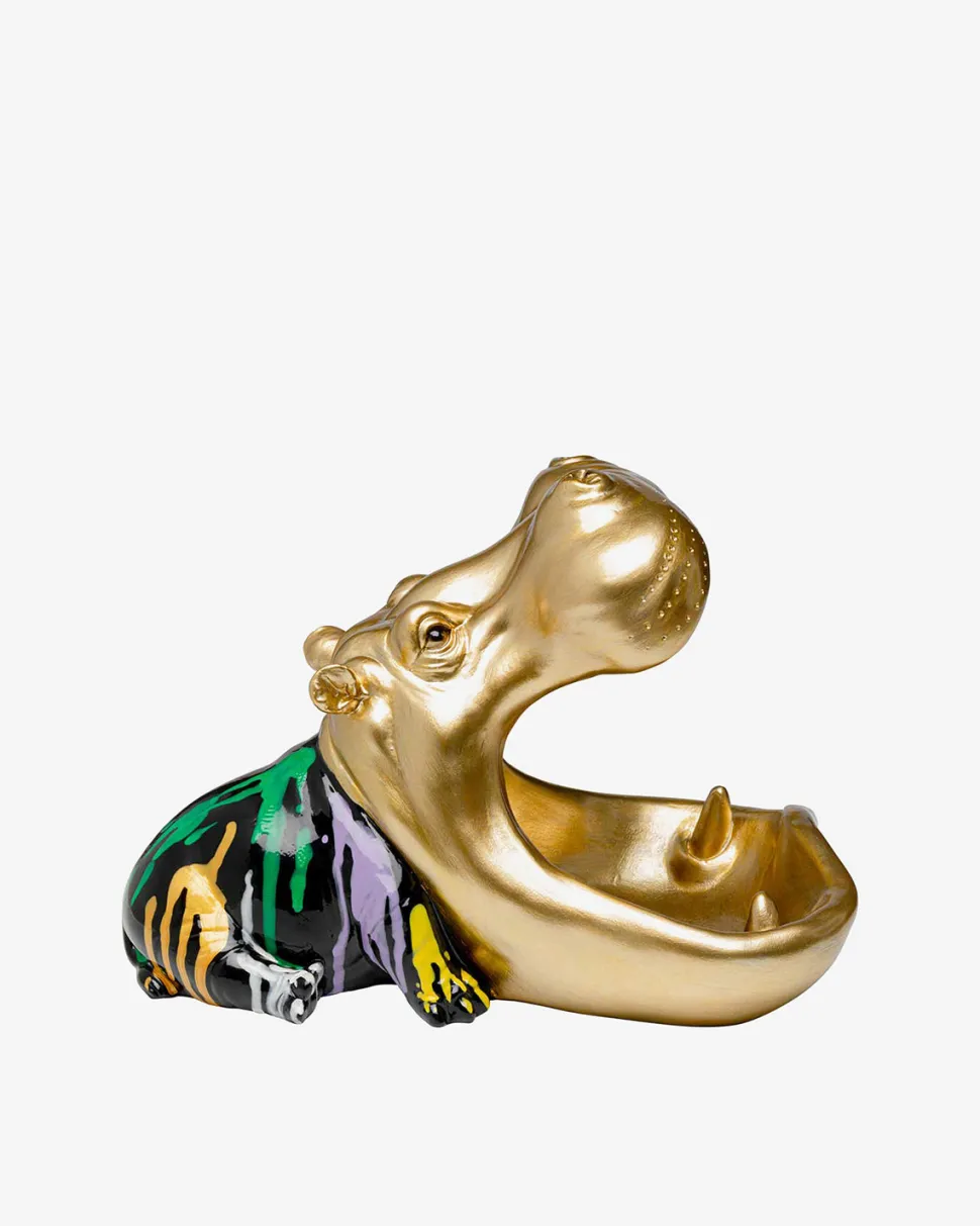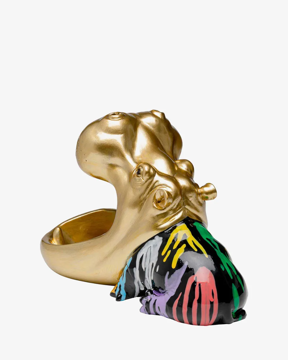Gylden dekorativ flodhestfigur med farverige detaljer