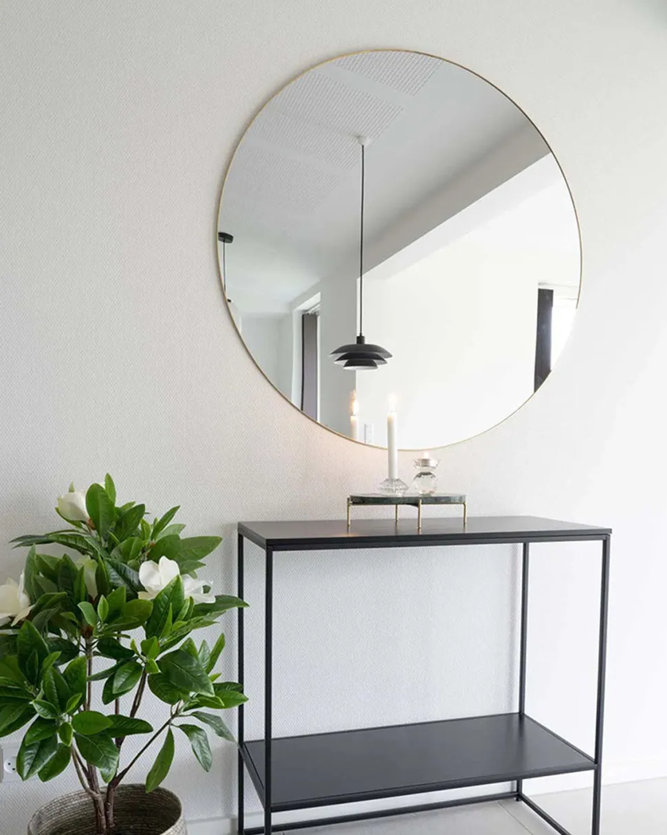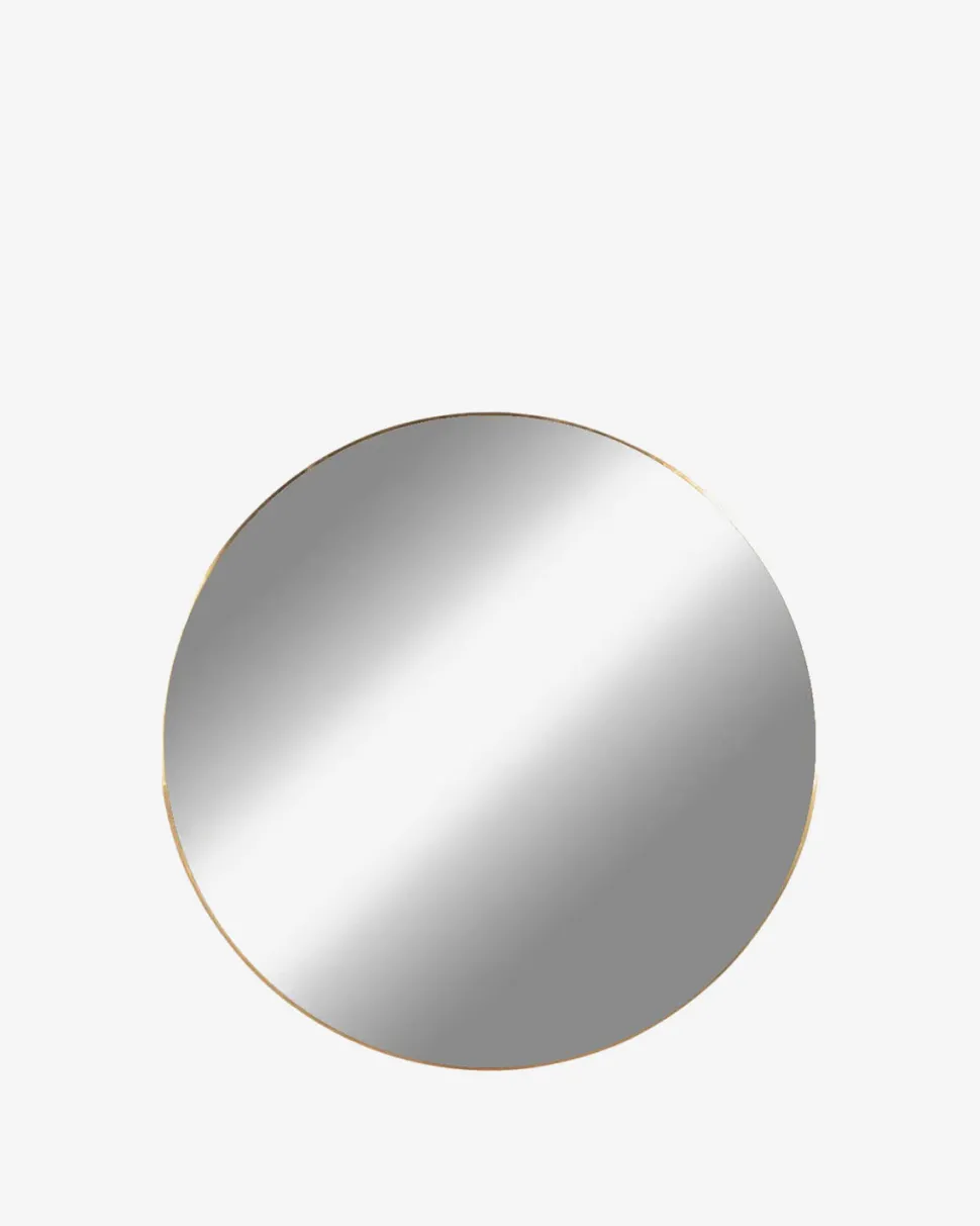 Jessi spejl – messing med tynd ramme. Stort væghængt spejl Ø.100 cm i elegant design.