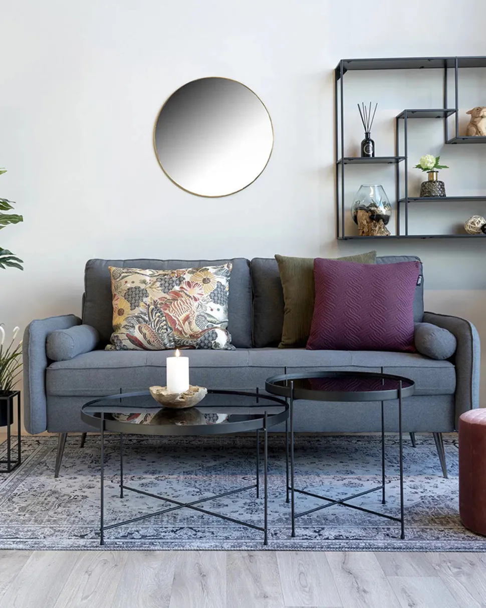 Jessi spejlet i Ø.60 cm er et kompakt og stilrent spejl med en tynd messingramme. Den mindre størrelse gør spejlet ideelt til mindre rum eller som del af en spejlvæg sammen med andre størrelser.