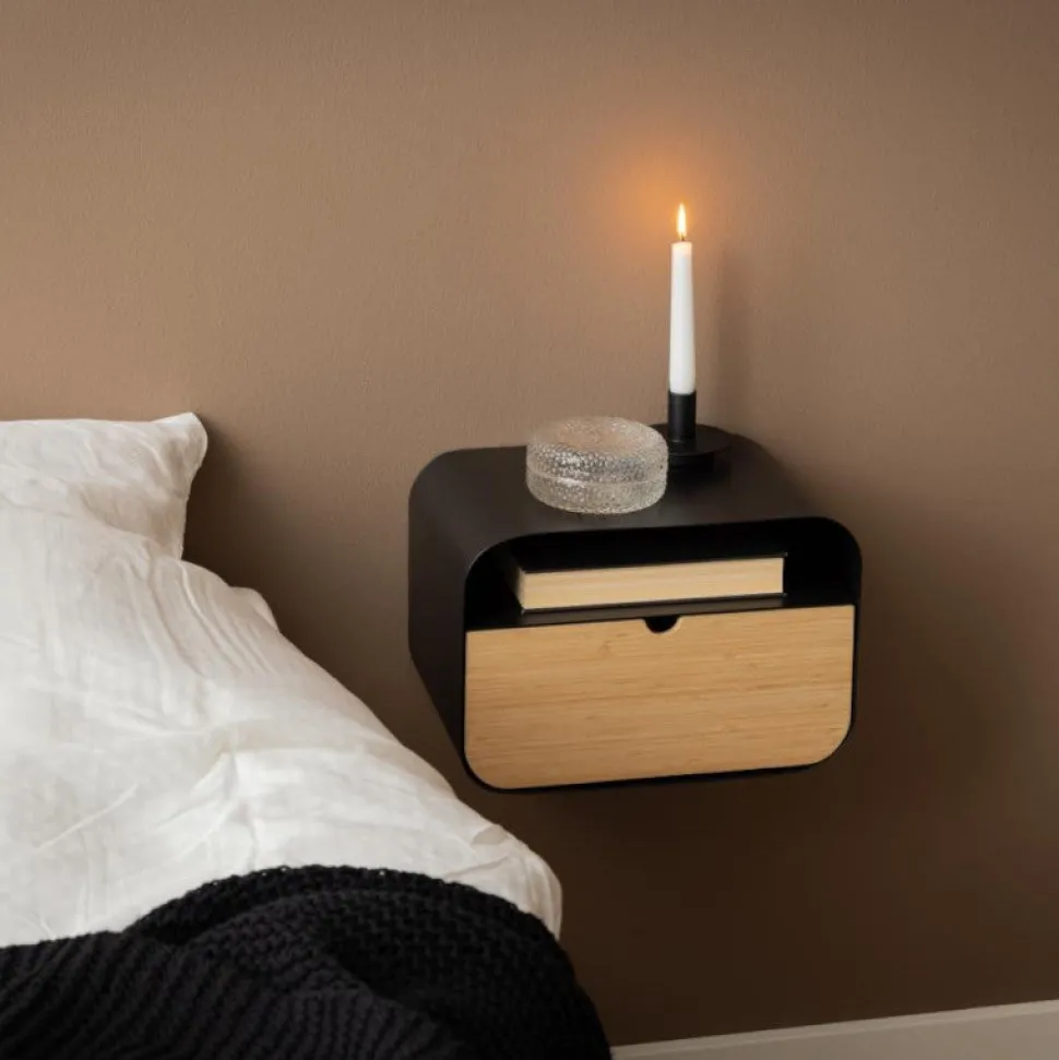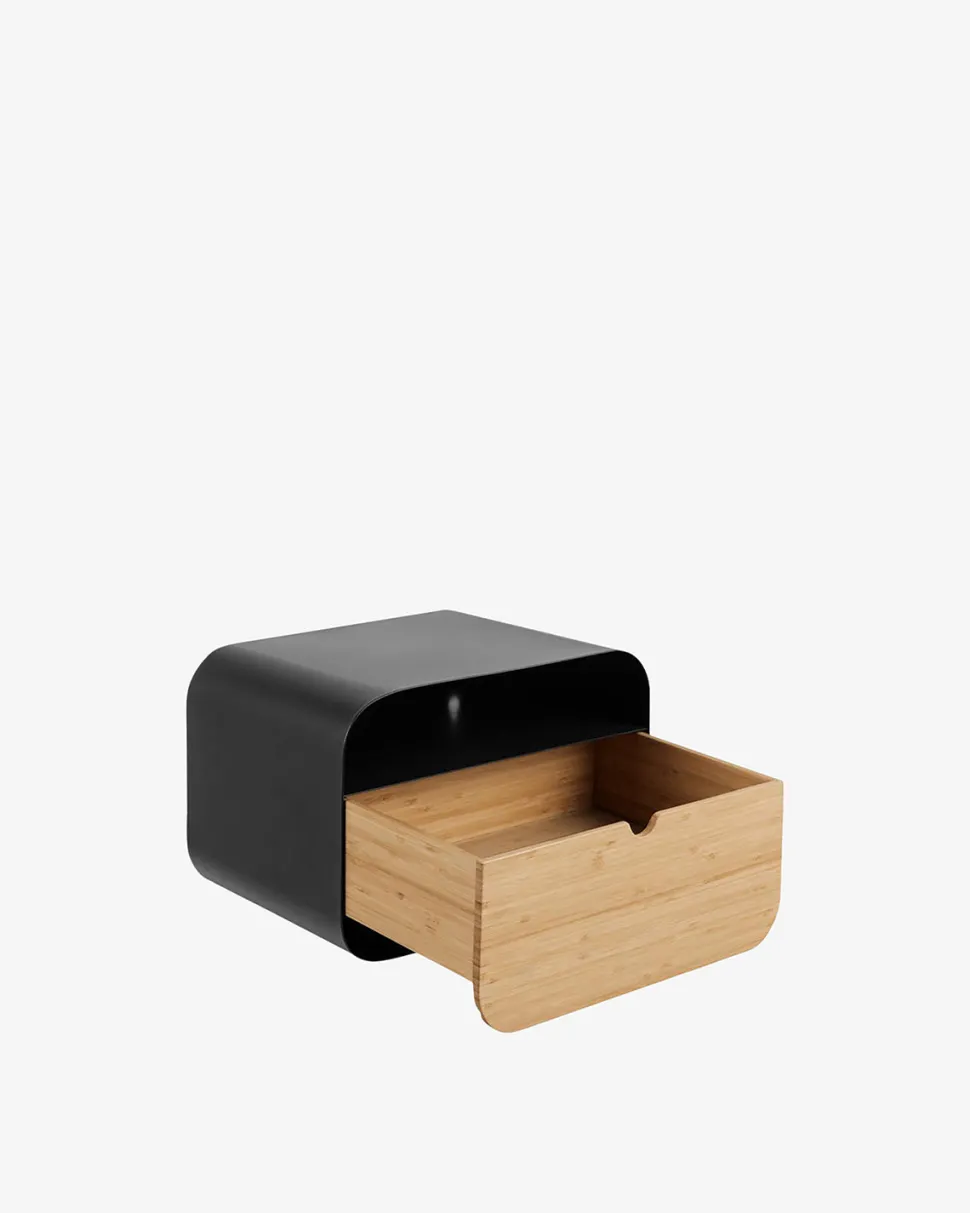 Joliet Natbordet er produceret i sort metal med en natur træskuffe. Perfekt til stilfuld opbevaring ved siden af sengen.