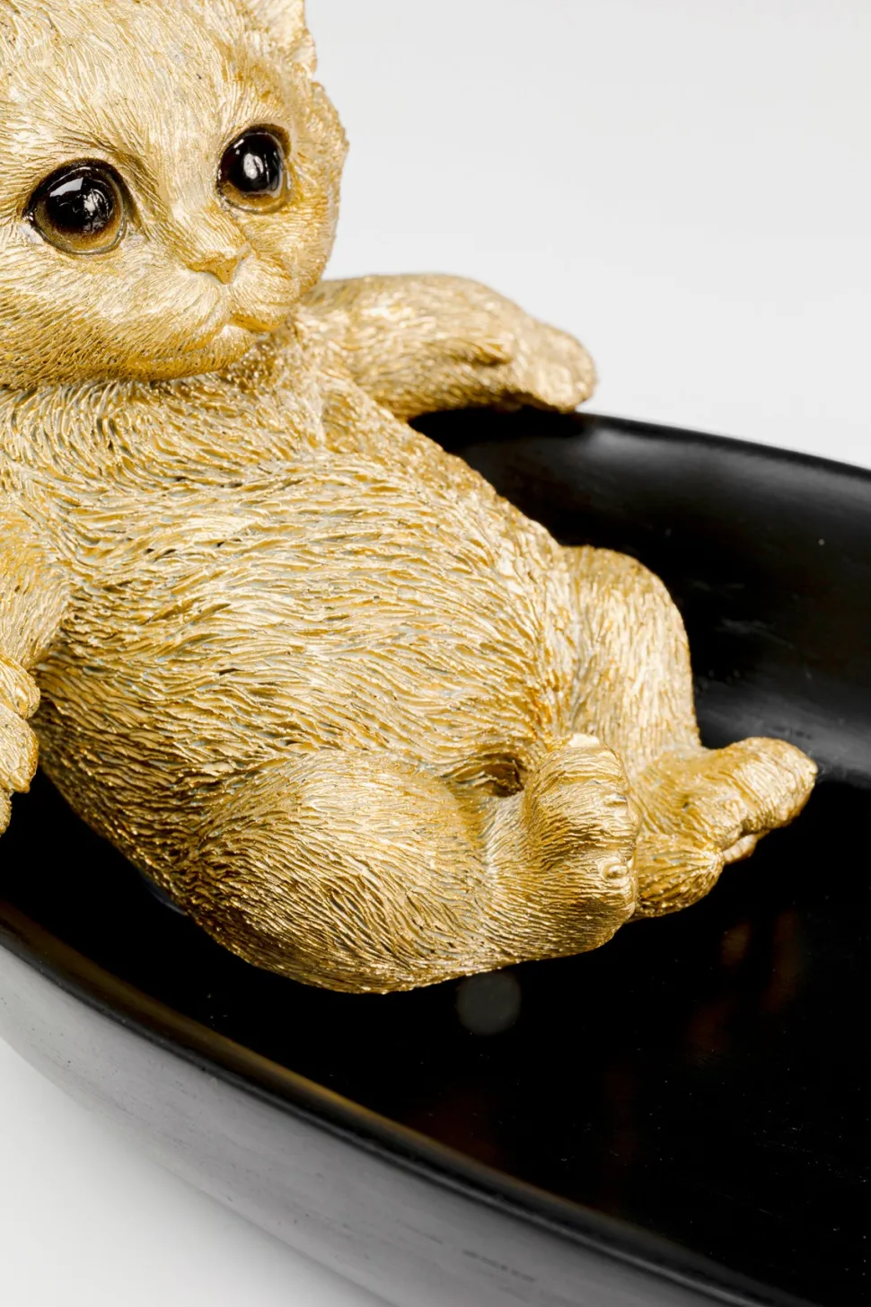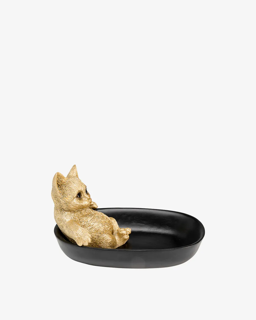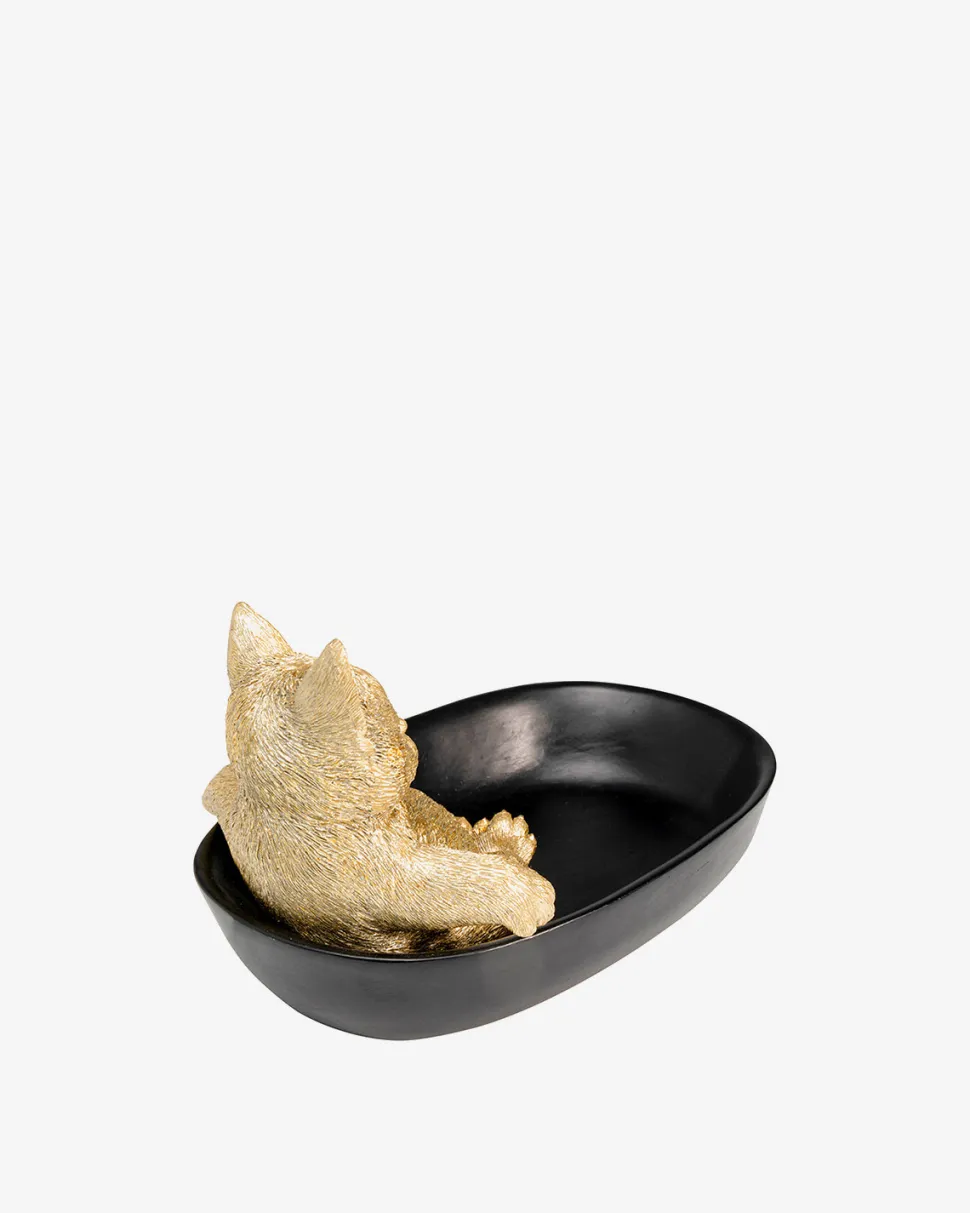 + Sort skål med guldfarvet kattefigur