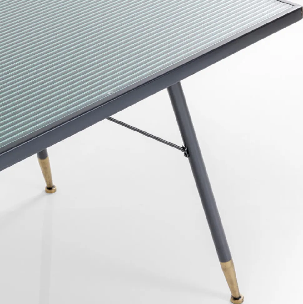 La Gomera er navnet på vores nye flotte serie af møbler fra tyske Kare design. Stilen på spisebordet er en smuk kombination af rå metal med et industrielt udtryk, og en riflet hærdet glasbordplade.