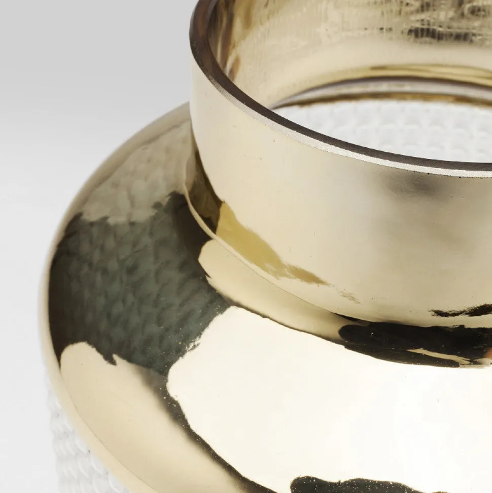 En mellemstor blomstervase i et spændende designmix af glas og guldfarvede highlights.