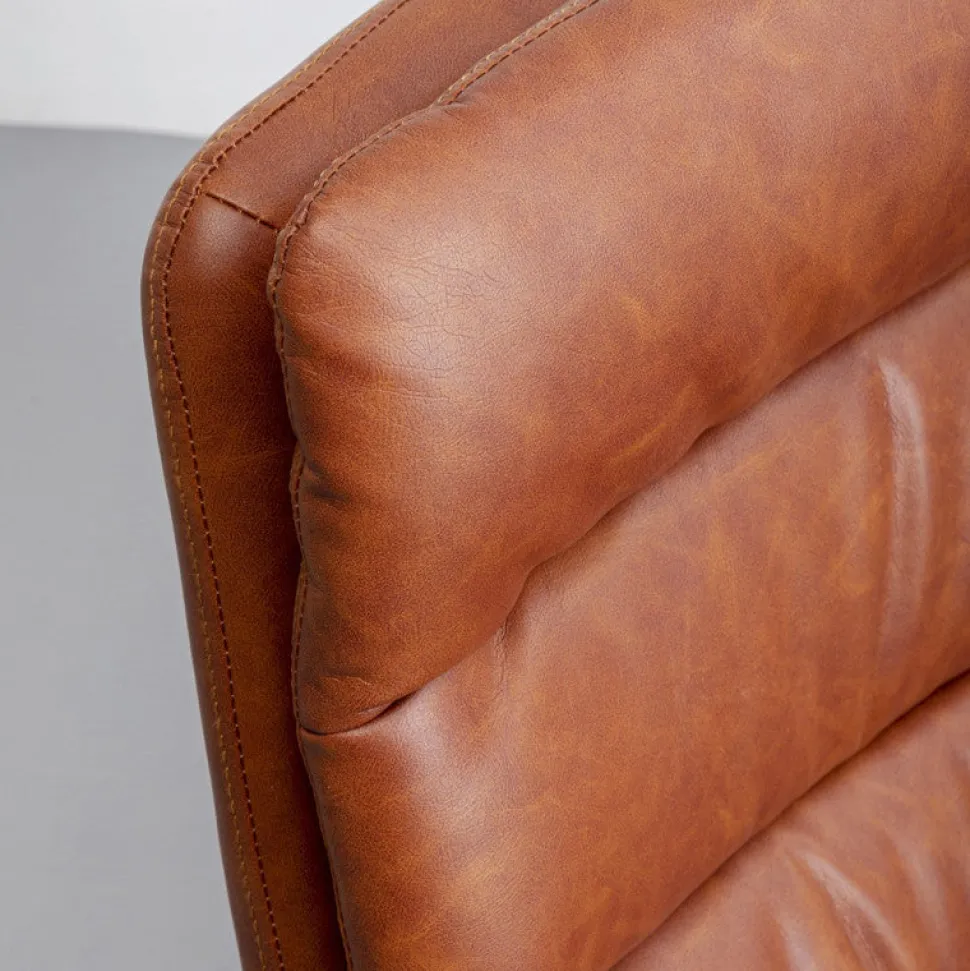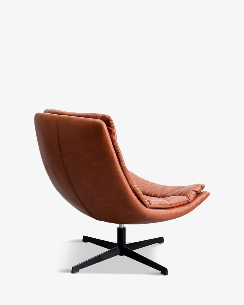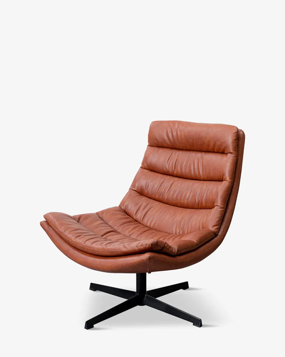 Lænestolen har sort drejestel, og det lækre læderlook i kraftig kvalitet giver en vedligeholdelsesfri og slidstærk overflade.