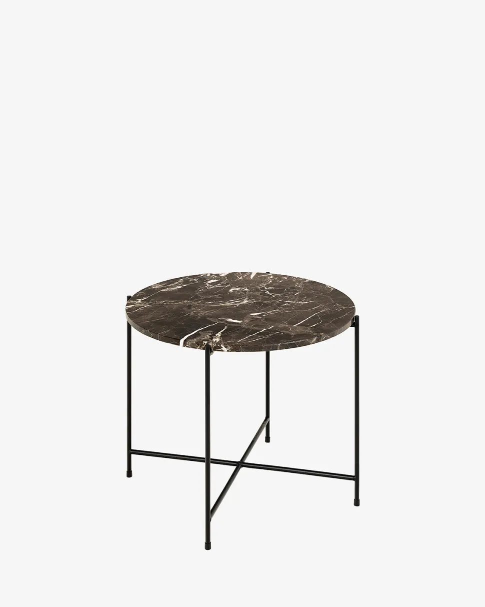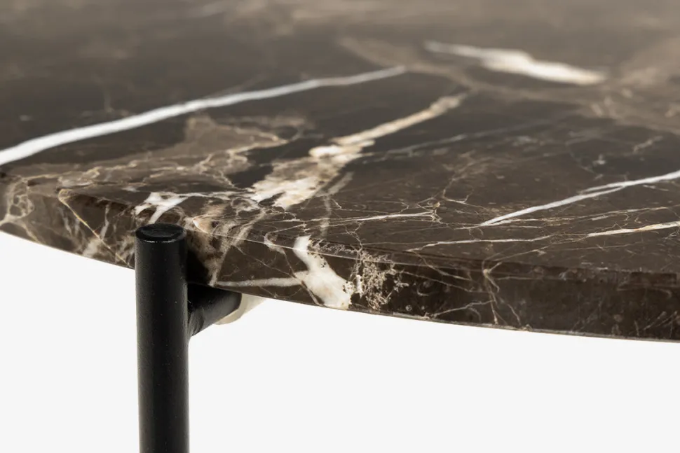 Light sofabordet i brun marmor tilfører varme og eksklusivitet til hjemmet. Bordpladen i brun marmor har smukt farvespil og hviler på et sort metalstel, der giver kontrast og luftighed til designet.