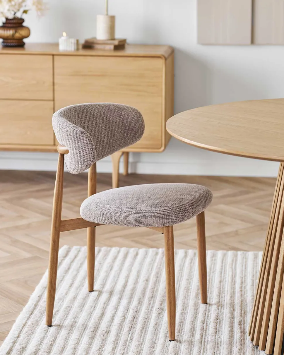 Spisebordsstol i sand/eg – moderne komfort og nordisk lethed