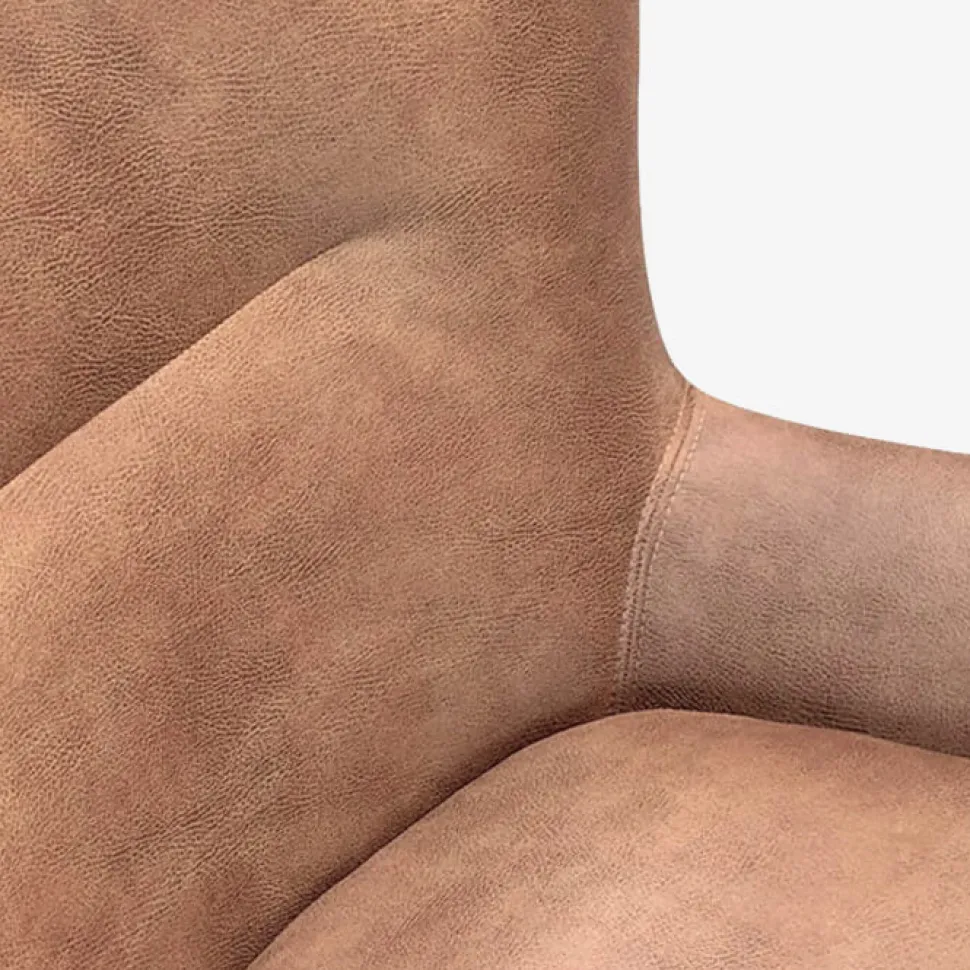 Her er stoffet betrukket med en flot og blød øko læder, som består af en blanding af læder og polyester i en lækker cognac farve.