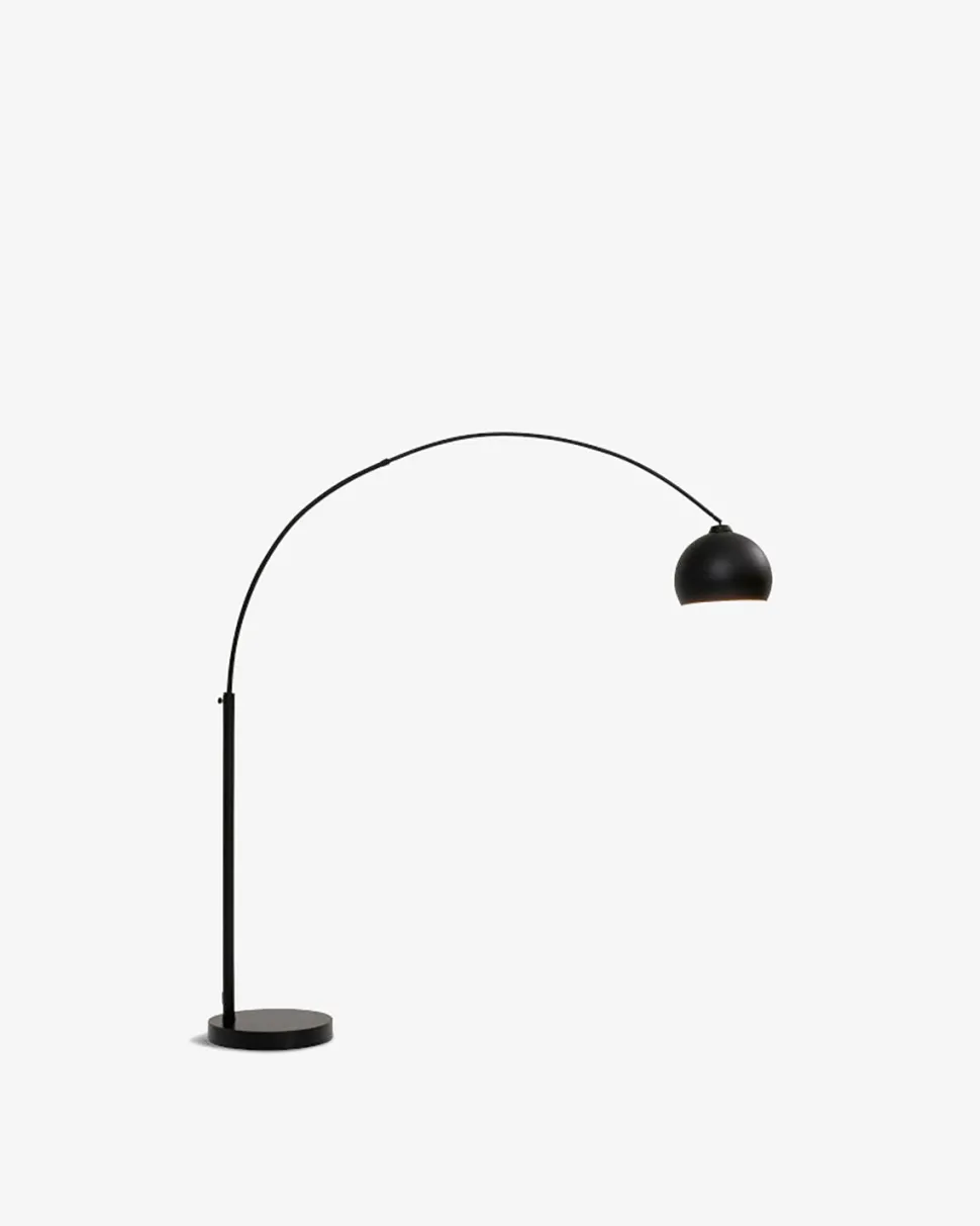 Denne moderne og solide udformede gulvlampe er vidunderligt velegnet til at indramme kommoder og dekorationer. Placeret bag eller ved siden af en lænestol eller sofa giver den et godt lys til læsning. Dets enkle design er ikke kun diskret, men også tidløst. En stor gulvlampe i sort med en lampeskærm inspireret af tressernes look.Den buede lampe er højdejusterbar og tilpasser sig nemt dit interiør.Robust og stabil med en tung base lavet af stål.En designerlampe, der allerede er en moderne klassiker.