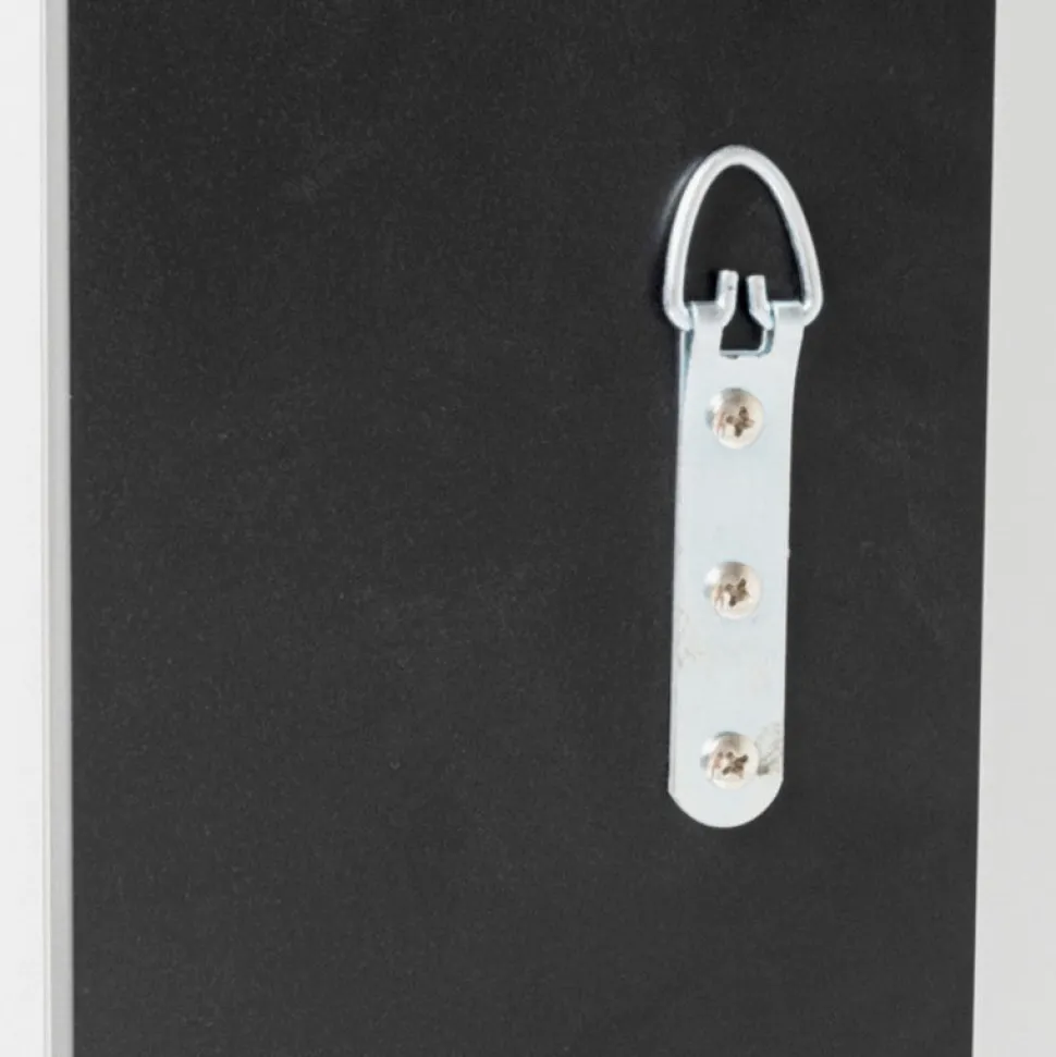 Robust bagpanel med billedkroge er monteret på bagsiden for nem lodret montering.