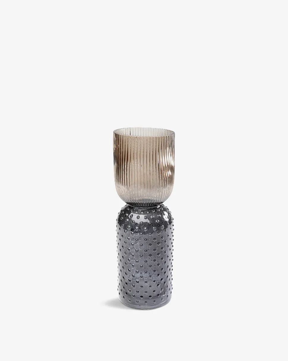 Smuk og dekorativ vase i en rigtig flot brun og grå farve med spil i glasset. Den er ideel til hjemmet med moderne farver.