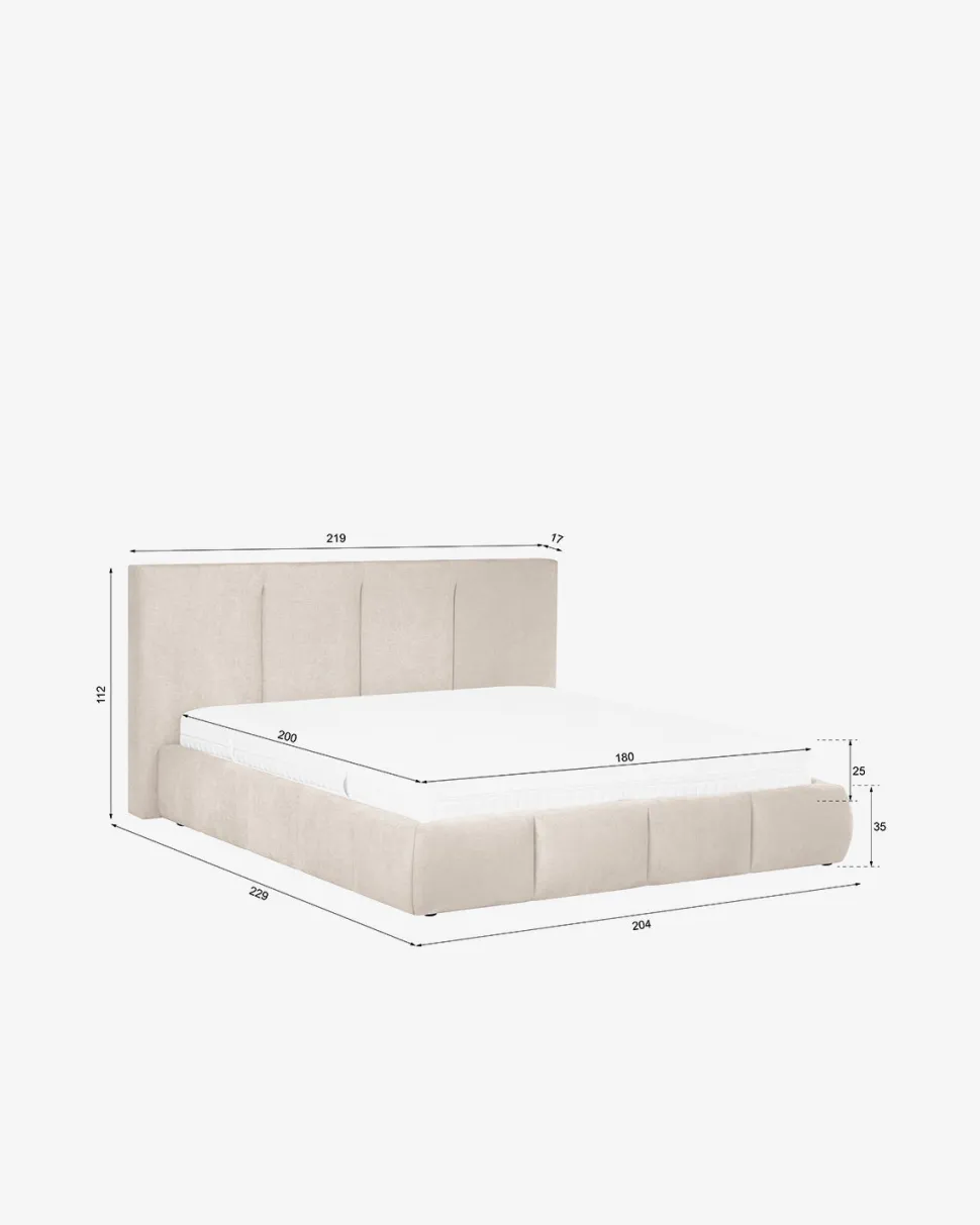 Matteo er en elegant magasinseng, der kombinerer god liggekomfort med smart og diskret opbevaring. Sengen er betrukket med Glory Pearl beige stof, som giver et blødt og harmonisk udtryk i soveværelset.