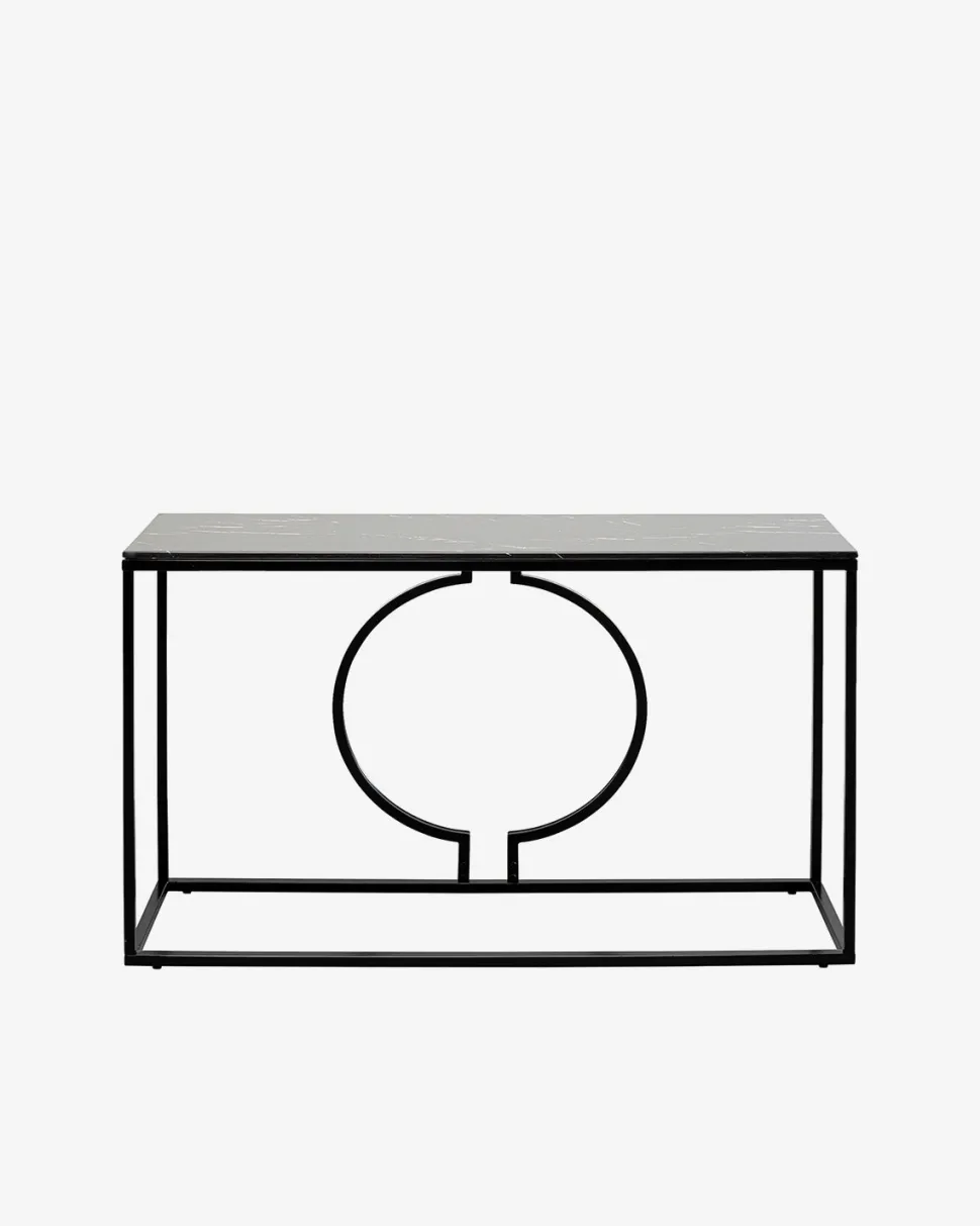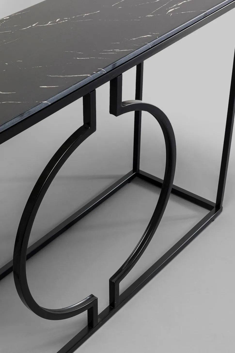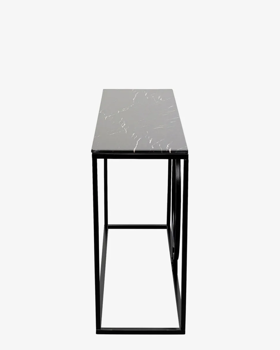 Det smukke Miami loft konsolbord er udført i en solid ramme af lakeret stål og sort marmorplade.