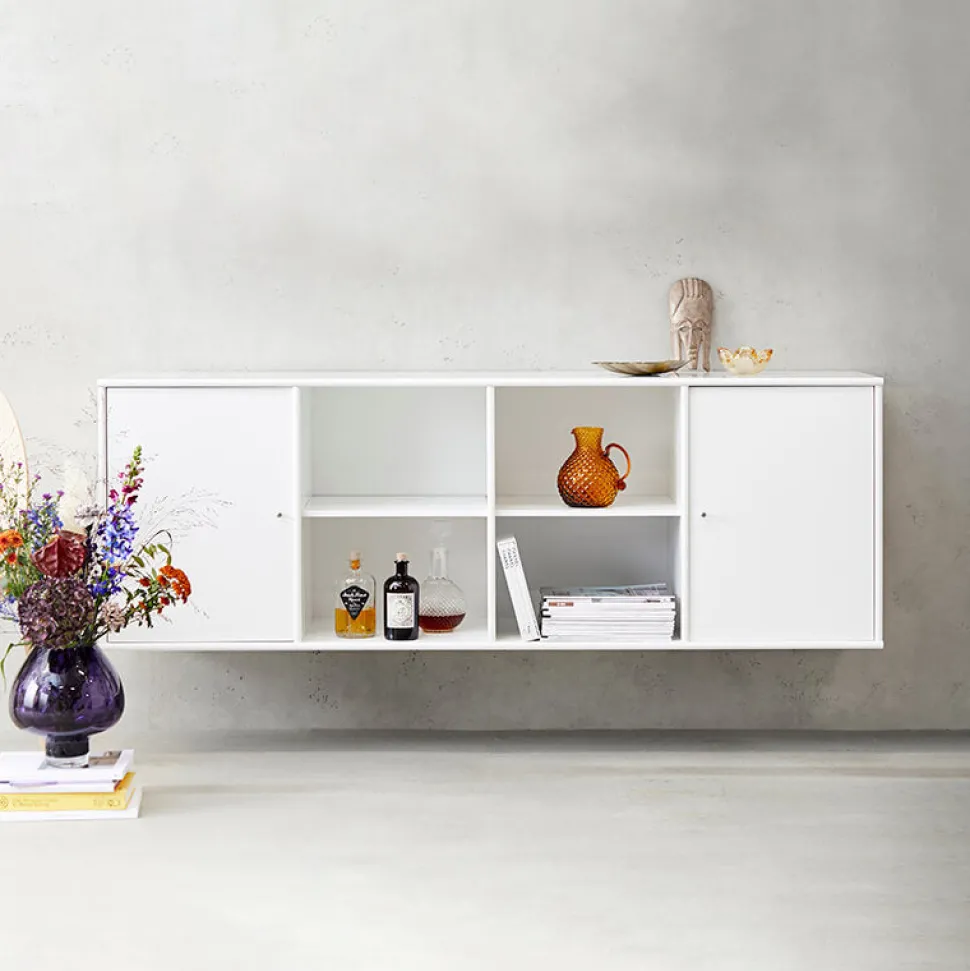 Denne skænk er produceret i hvid, og bag de 2 låger findes der to brede rum, opdelt af en flytbar hylde, så man nemt kan opbevare de nødvendige ting i entréen eller stuen.
