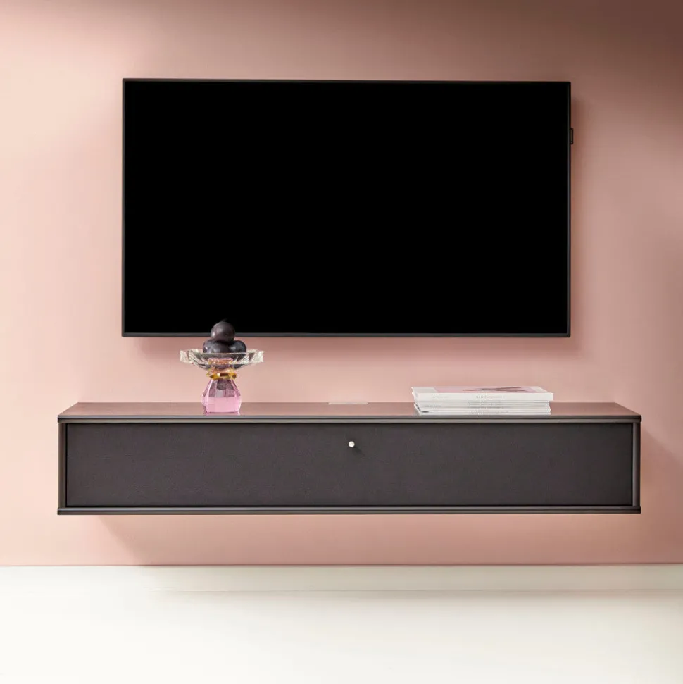 TV-bord i let, stilrent dansk design fra Mistral-serien. Møblet er i antracitlak med antracitfarvede fronter.