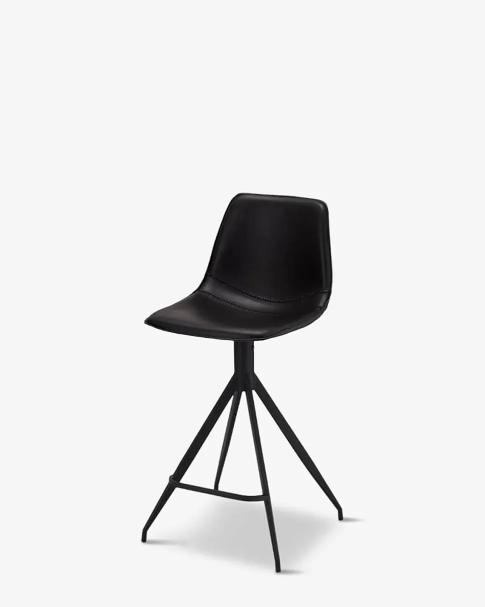 Det smarte dreje stel i sort metal gør det muligt, at komme til og fra baren uden at trække stolen over gulvet.