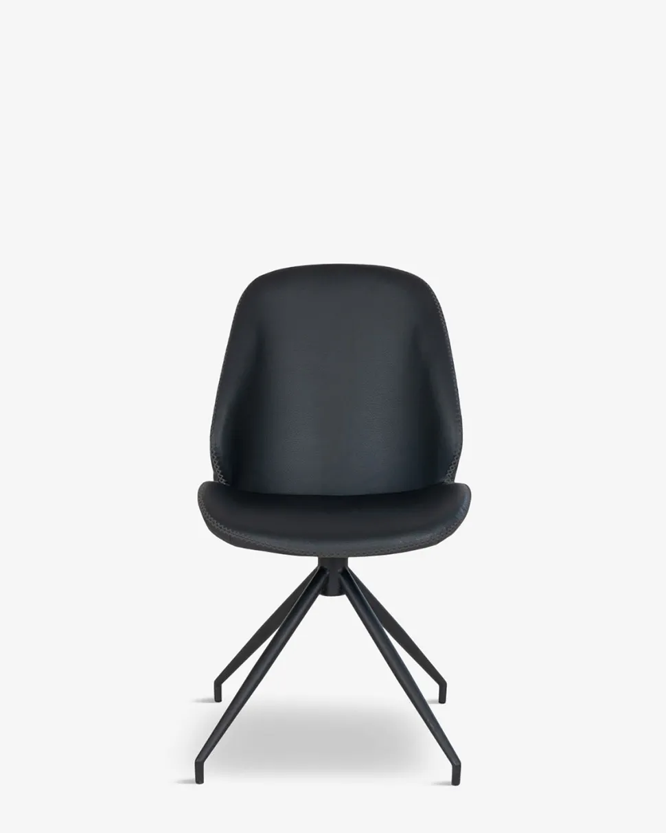 Flot og Enkel Spisebordsstol i sort læderlook. Skaber et stilrent og klassisk udtryk i spisestuen.