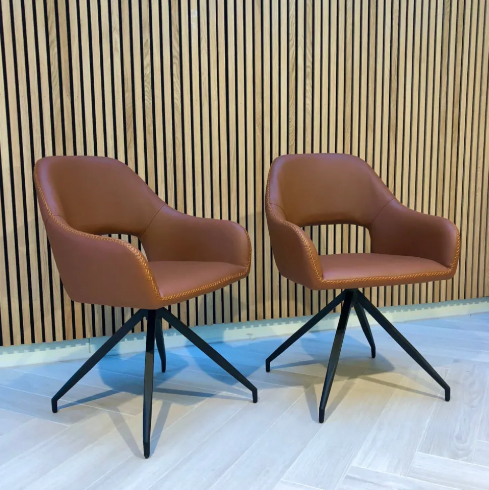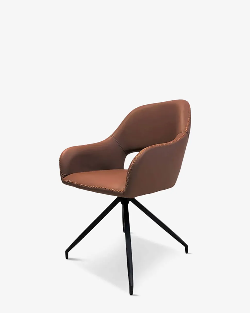 Nola er en smuk spisebordsstol i nordisk design med bløde og slanke linjer. Spisestolen har fine detaljer som krydssyninger og drejestel.