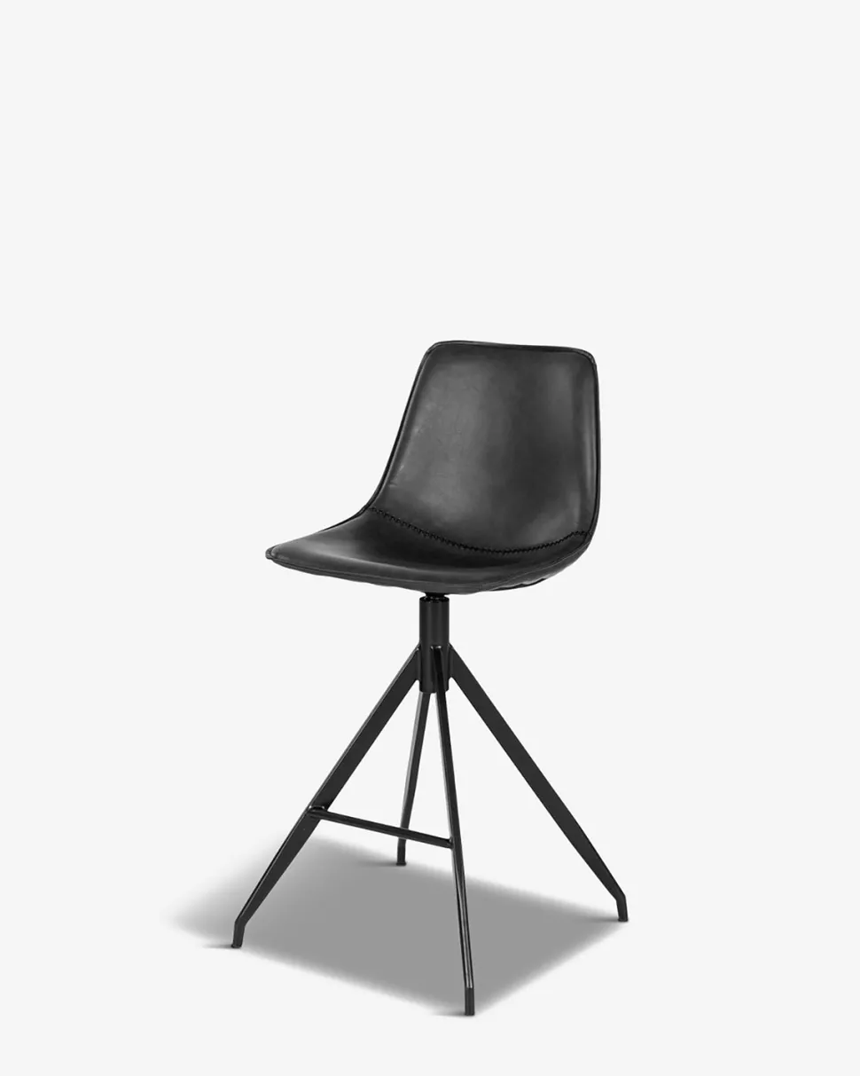 Det smarte dreje stel i sort metal gør det muligt, at komme til og fra baren uden at trække stolen over gulvet.