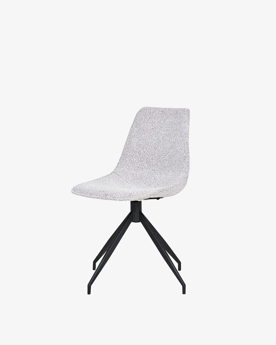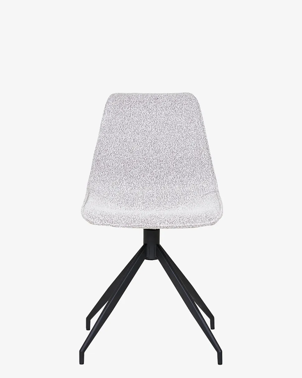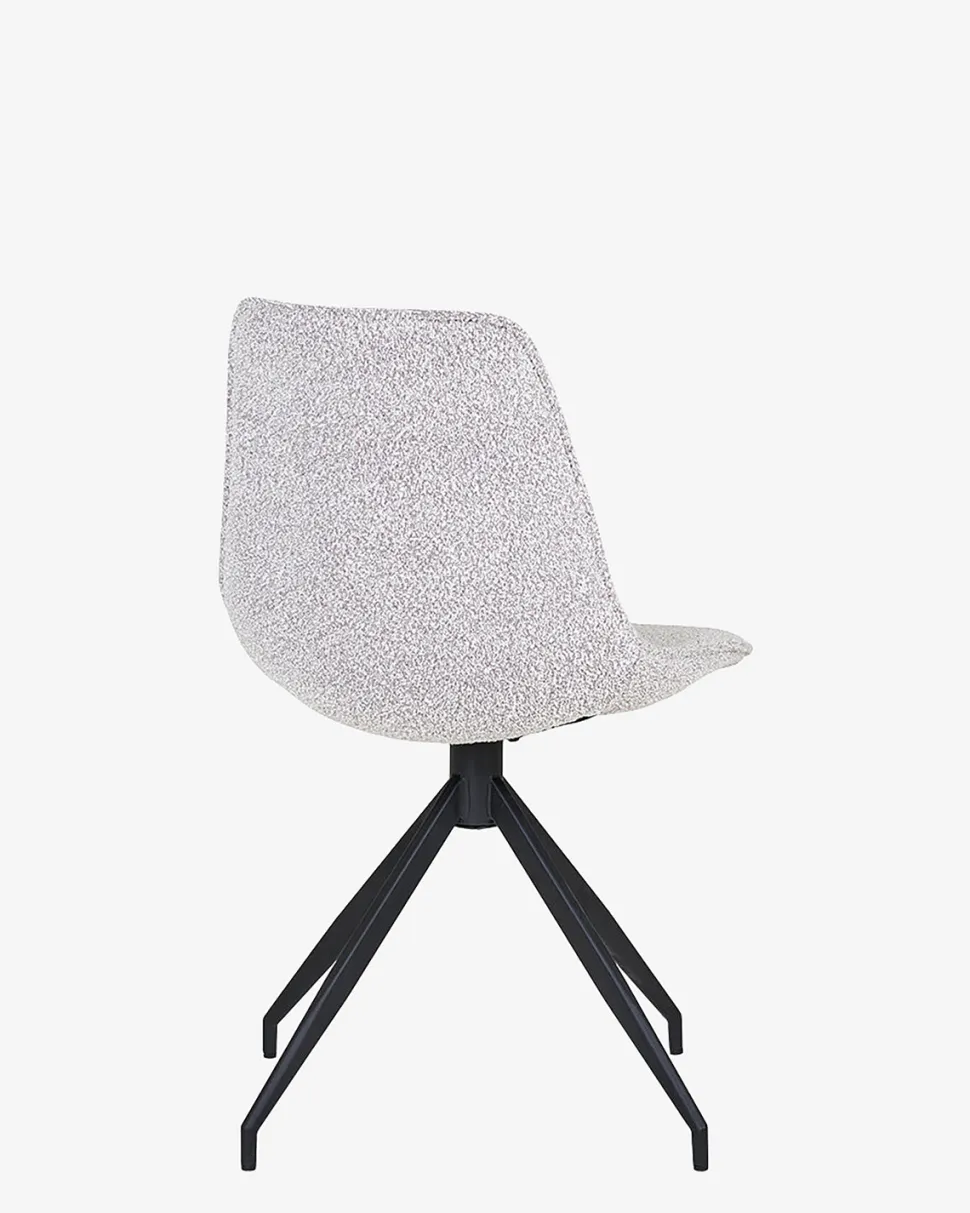 Flot og enkel Noor spisebordsstol i sand, og med det bløde bouclé stof, og monteret med sort drejestel.