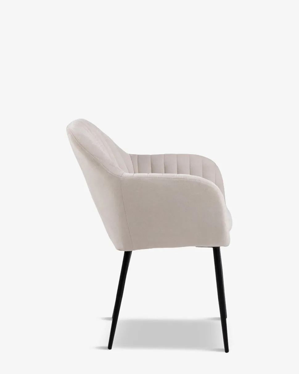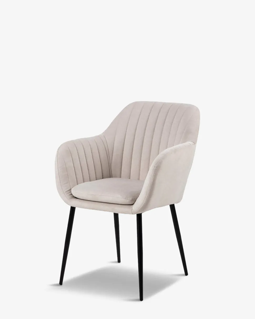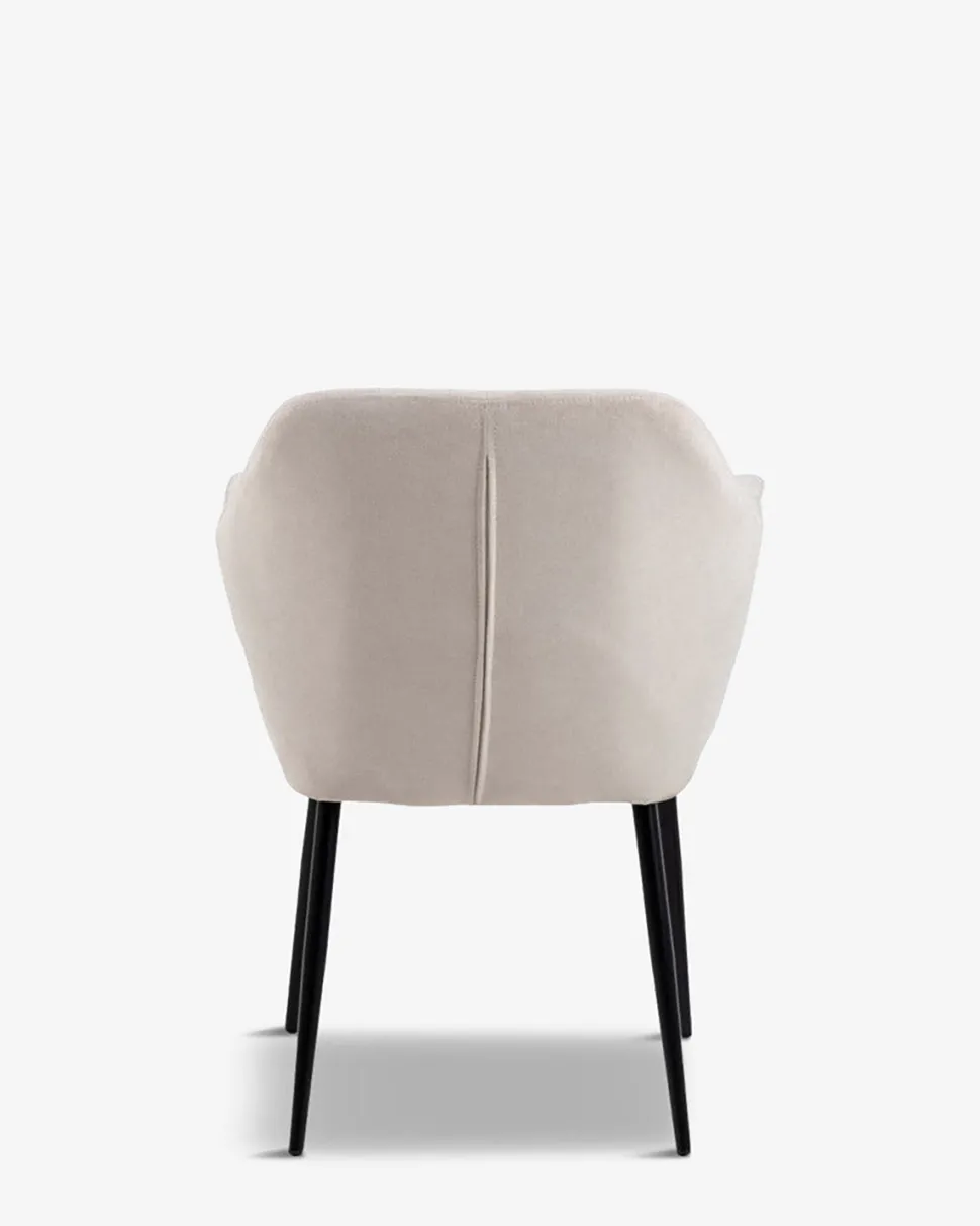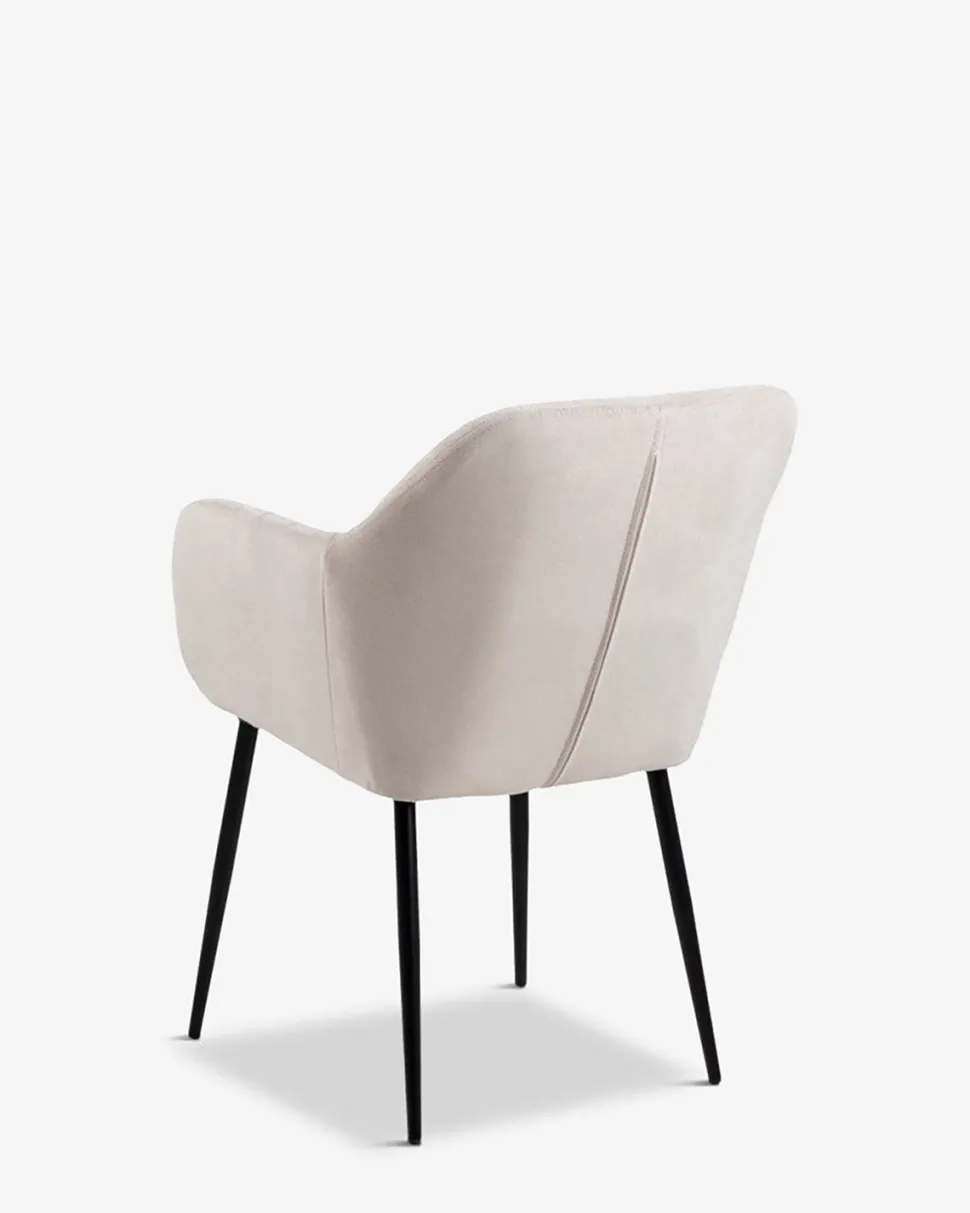 Den bløde overpolstrede stol giver en fantastisk komfort og armlænet gør man sagtens kan blive hængende længe efter desserten.