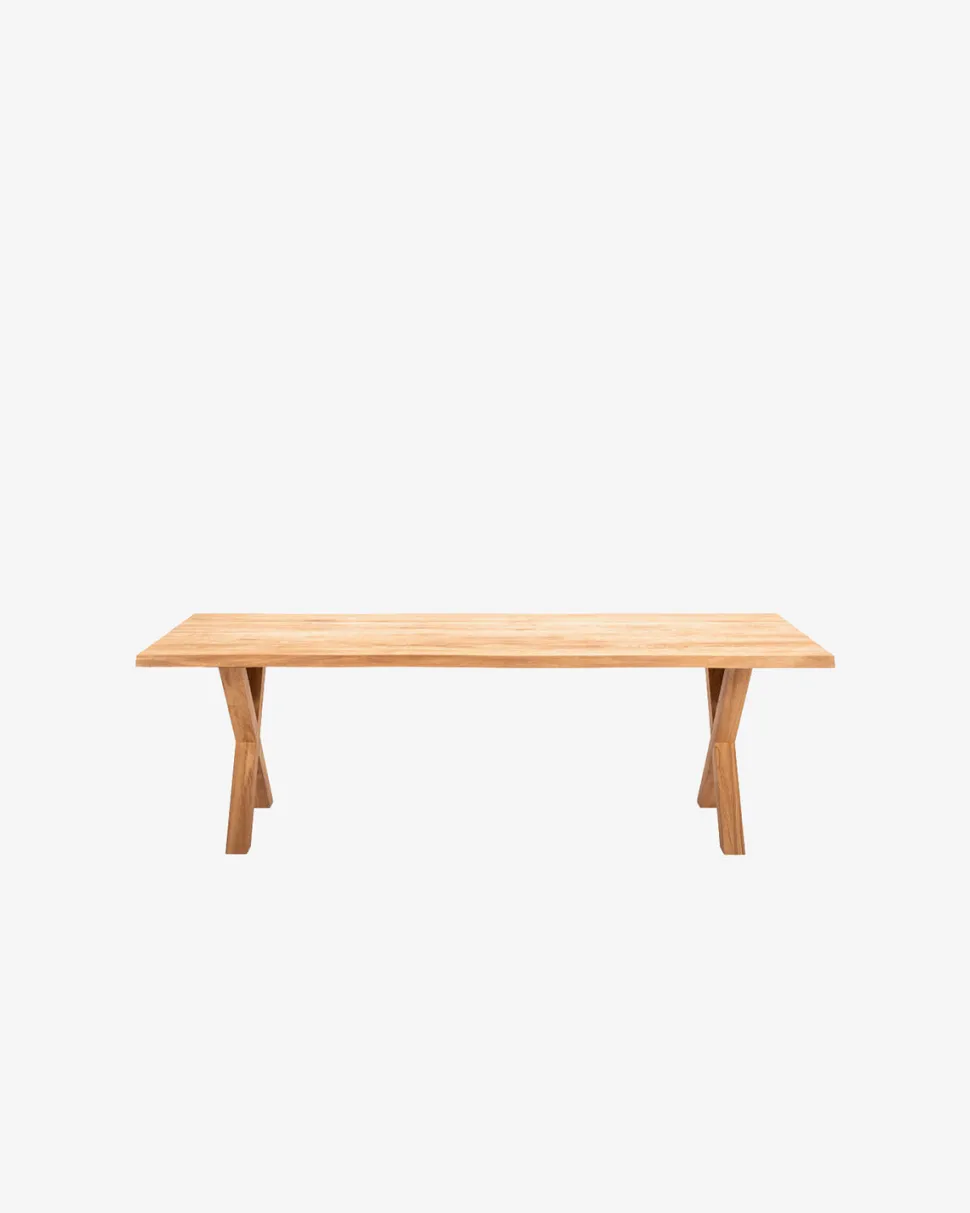 Robust design: Kraftige X-ben og buet bordkant giver bordet karakter.