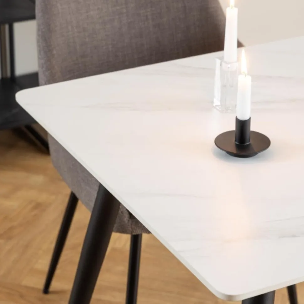 Oplev den perfekte kombination af stil og funktionalitet med vores smukke spisebord med keramisk plade. Dette bord er designet til at være midtpunktet i dit hjem, hvor familie og venner kan samles om gode måltider og hyggelige stunder.