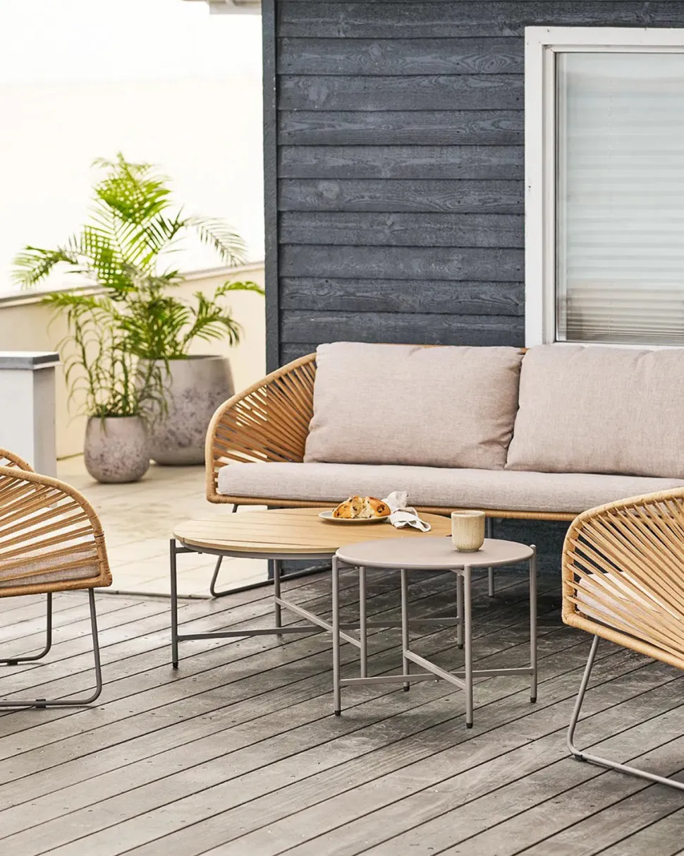 Novella loungesættet i sand kombinerer et let, slankt design med høj komfort og gennemtænkte materialer. Det elegante stel og den kraftigt vævede snor giver sættet et luftigt og moderne udtryk, som passer perfekt til både terrasse, altan og have.
