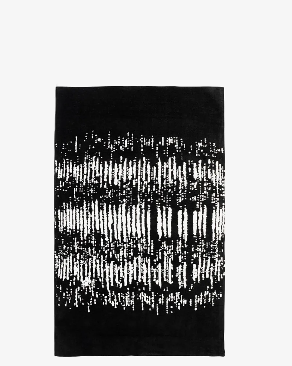 Lækkert tæppe med et moderne mønster i sort og hvid.