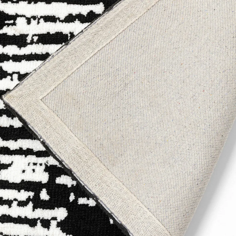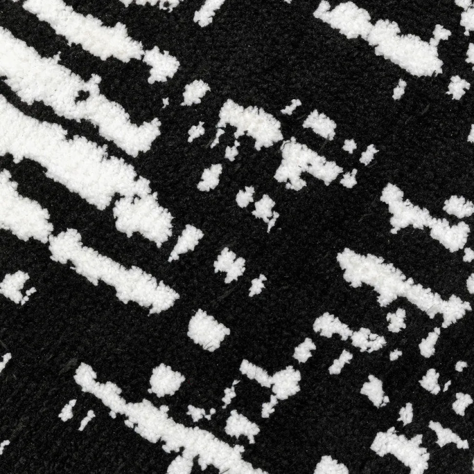 Lækkert Tæppe med et moderne mønster i sort og hvid. Tæppet er lavet af bomuld/polyester og er nemt at rengøre.