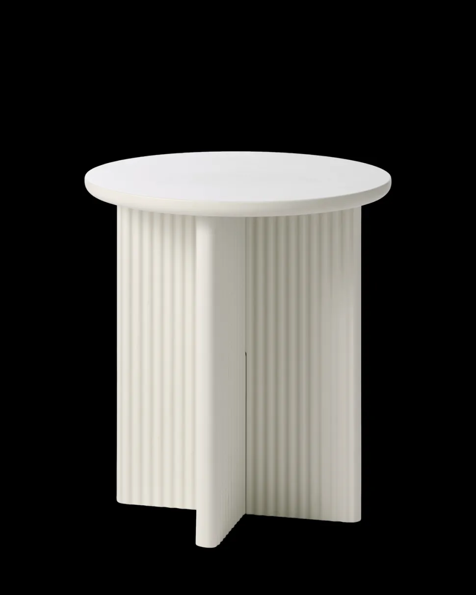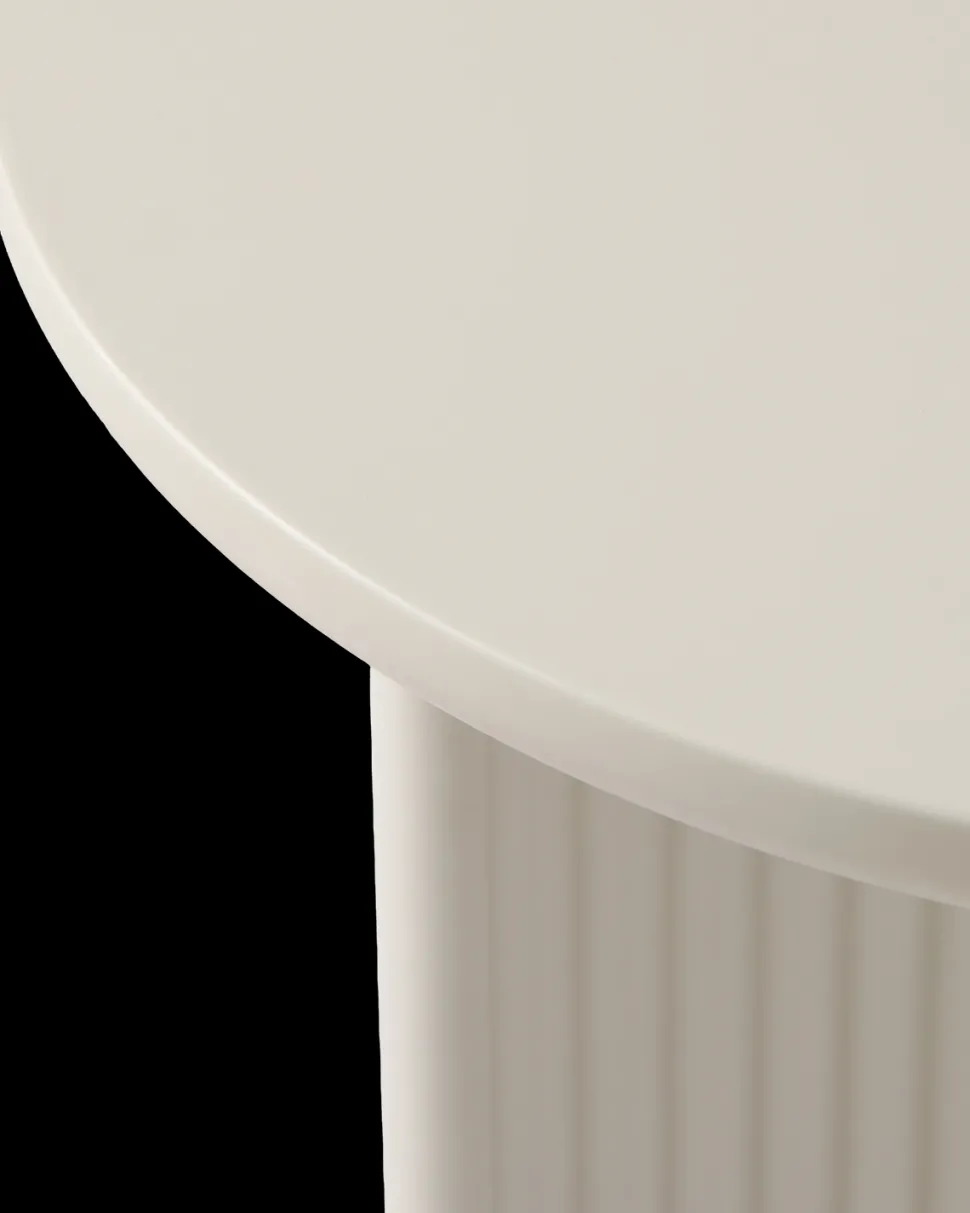Palma sidebord Ø50 cm i greige med dekorativt stel. Kompakt og stilrent bord perfekt ved sofaen eller lænestolen.
