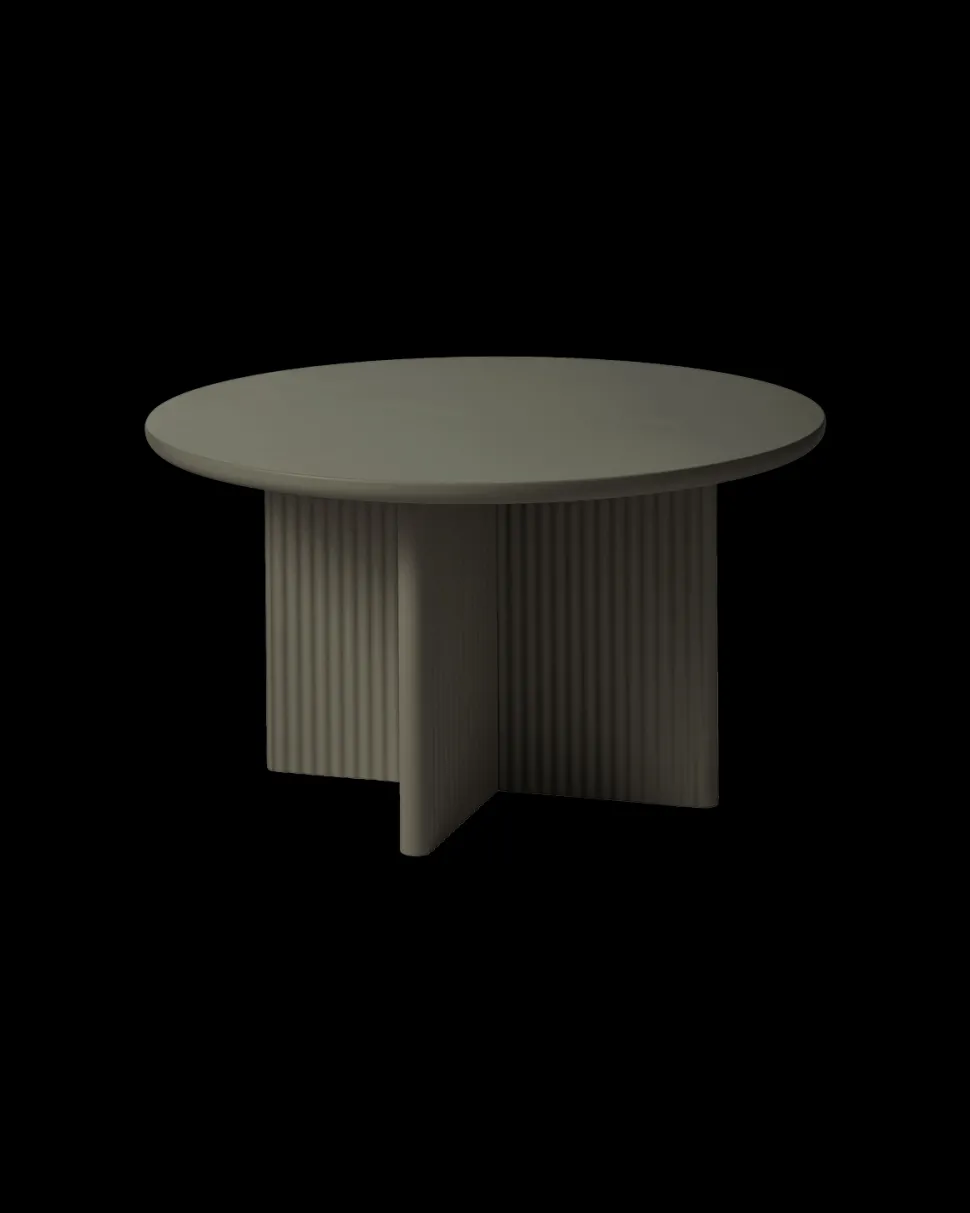 Palma sofabordet i grå/grøn giver stuen et roligt og moderne udtryk. Den smukke farvetone tilfører varme og personlighed til indretningen, samtidig med at bordets runde form skaber en blød og harmonisk balance i rummet.