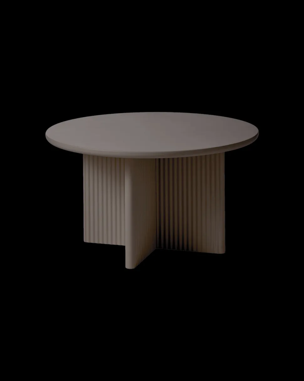 Palma rundt sofabord Ø80 cm i taupe med dekorative udfræsninger. Et stilrent sofabord med elegant og tidløst design.
