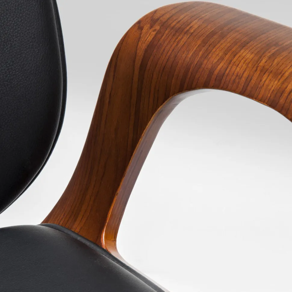 Her viser vi Patron kontorstol i valnød. Stolens elegante design skaber et stilrent udtryk på kontoret.