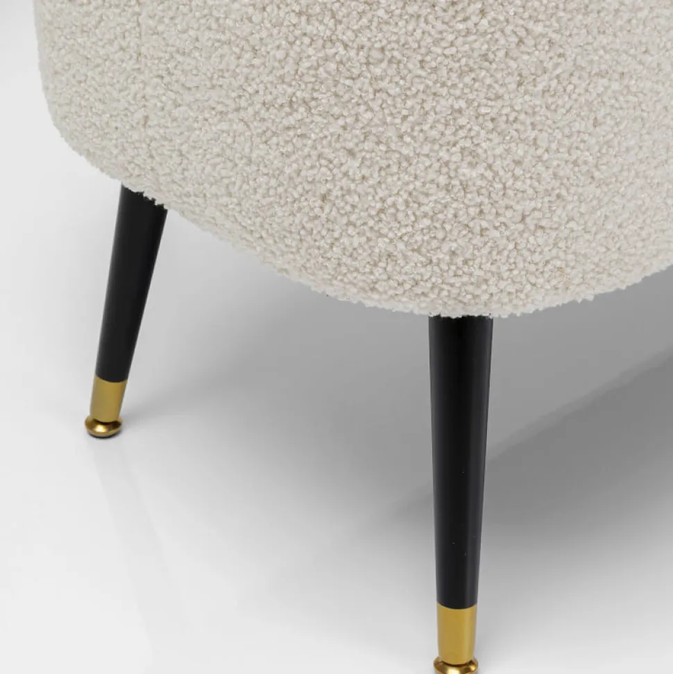 Flot og dekorativ bænk, der kan bruges i entreén, stuen eller i soveværelset. Der er praktisk opbevaringsplads, og den er betrukket med cremefarvet stof i 100% polyester.