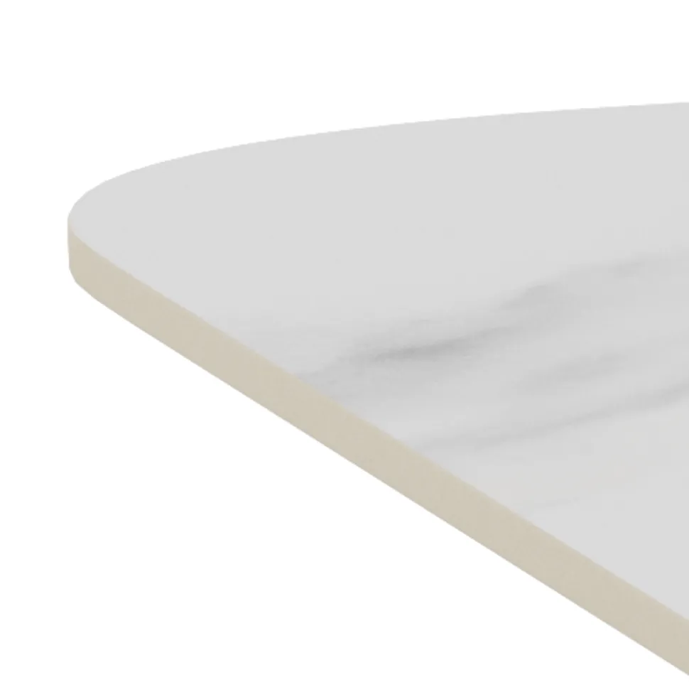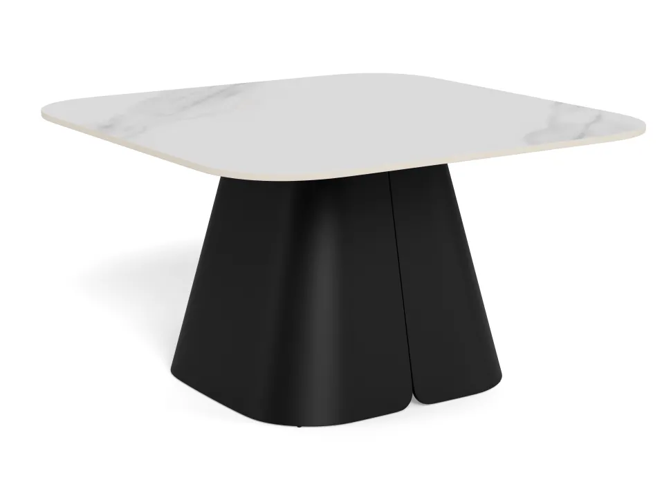+Keramisk bordplade: Salinas sofabord i firkantet design med runde hjørner, en elegant bordplade i hvid Unico ru keramik.