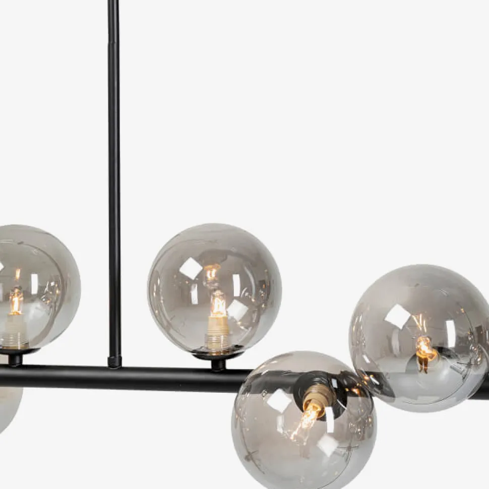 Scala Balls loftlampe – sort med røgfarvet glas. Pendel med 14 glaskupler og justerbar højde.