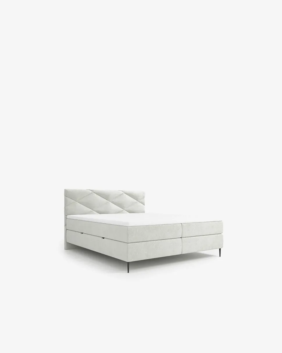 Sengens elegante design fremhæves af en hovedgavl med diamantformede syninger, og de 15 cm høje ben tilføjer lethed til hele strukturen.