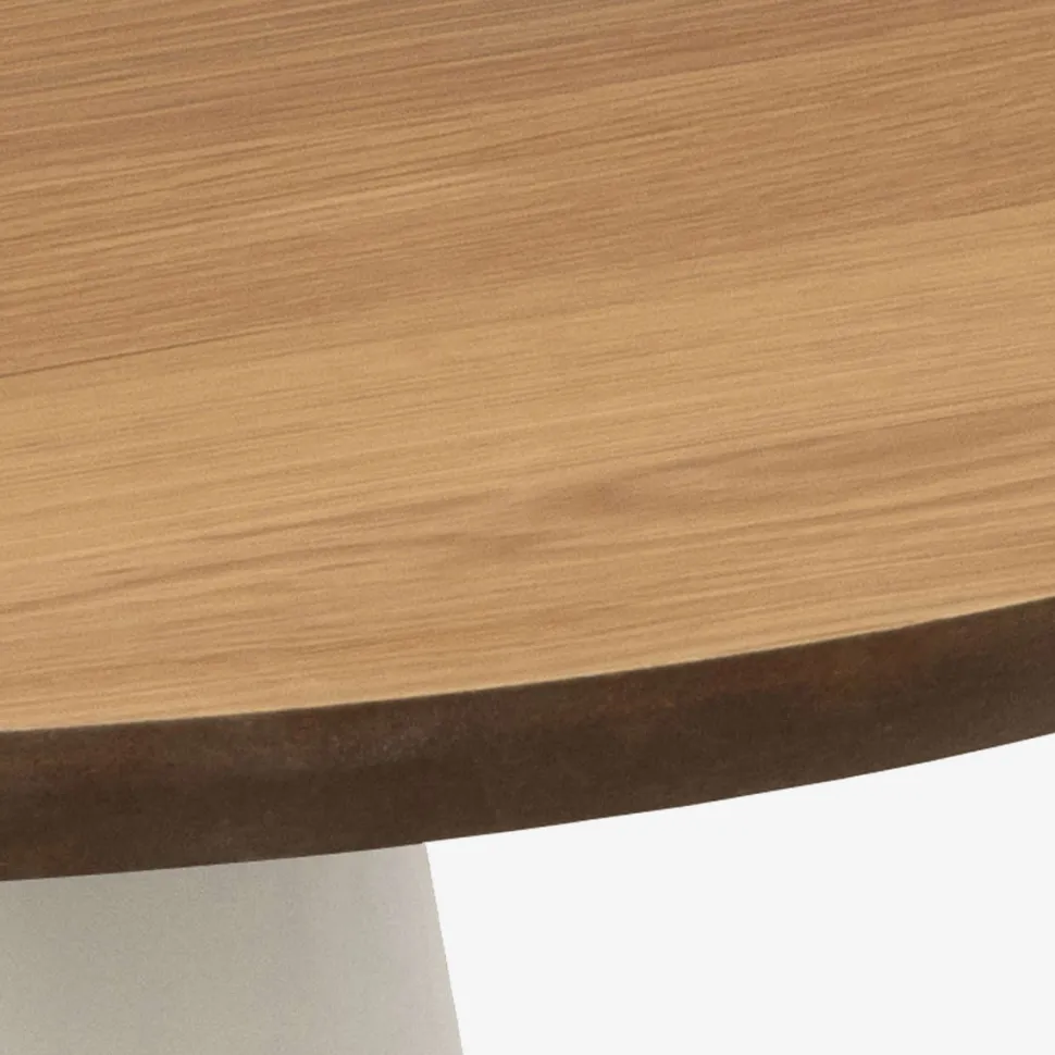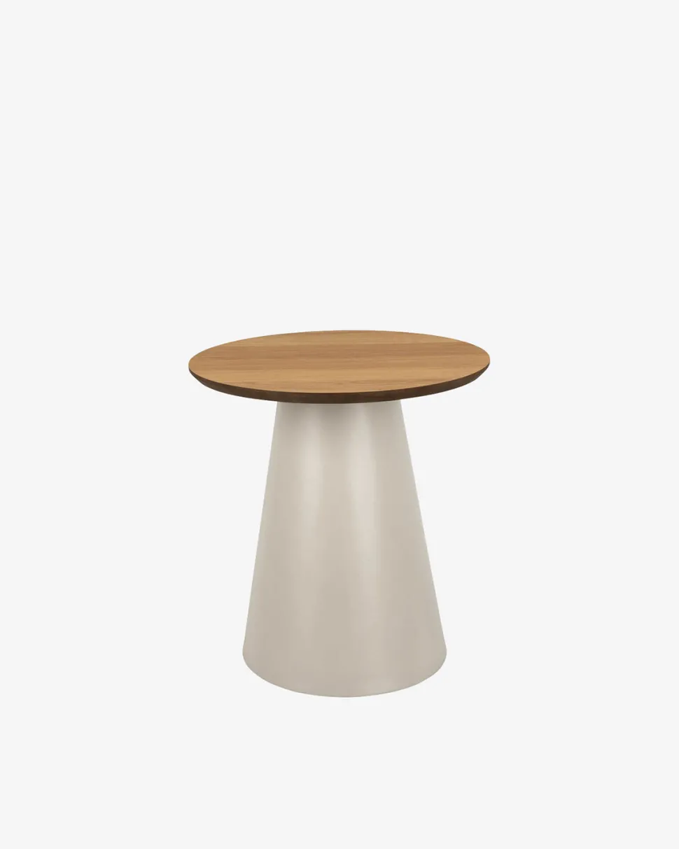 Soli sofabordet forener naturlige materialer og bløde former i et elegant nordisk design. Den runde bordplade i smuk eg finer giver varme og karakter til rummet, mens det grå kegleformede stel skaber en spændende kontrast og et stabilt udtryk.