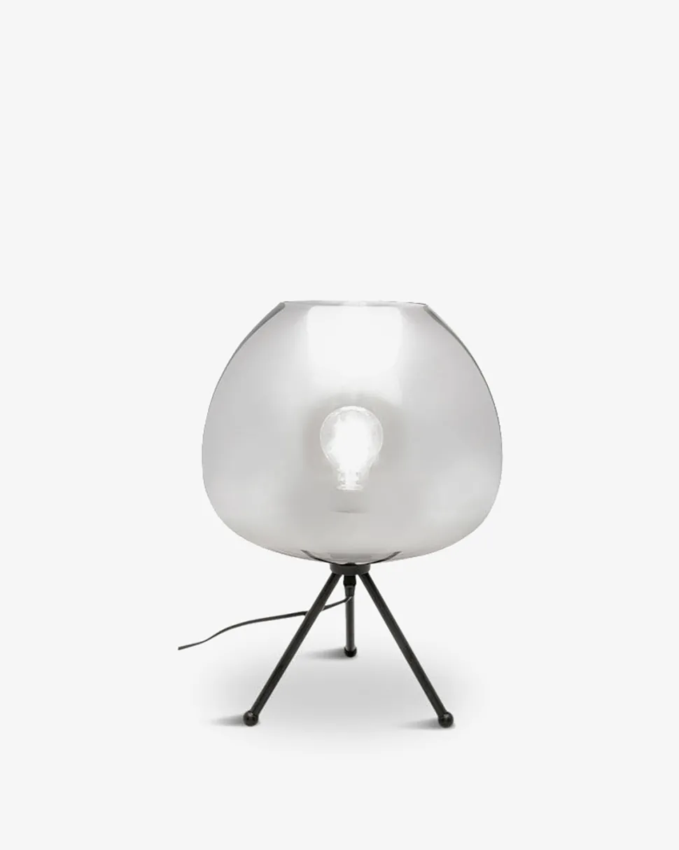 Sphere smoke bordlampe er en moderne og unik bordlampe med røget glas og sort stel.