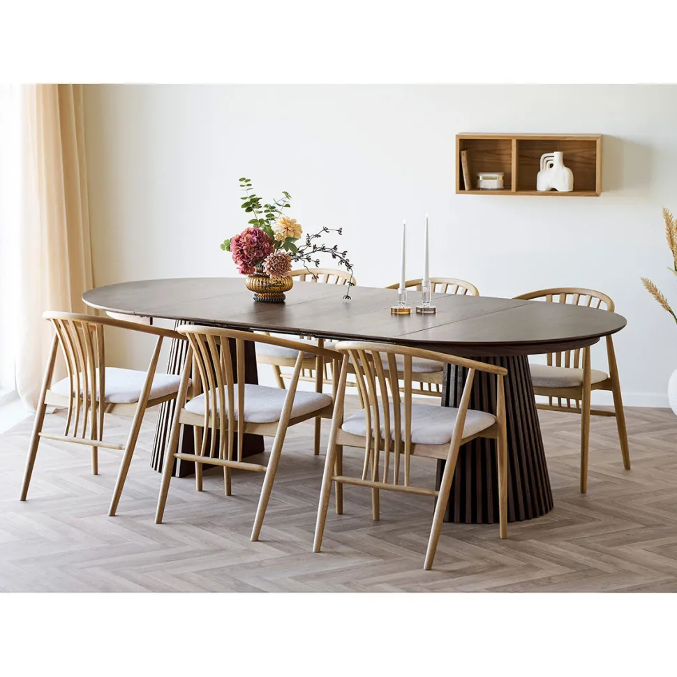 Stella Spisebord – rund elegance med skjult fleksibilitet. Stella spisebordet forener bløde former med praktisk udtræk.