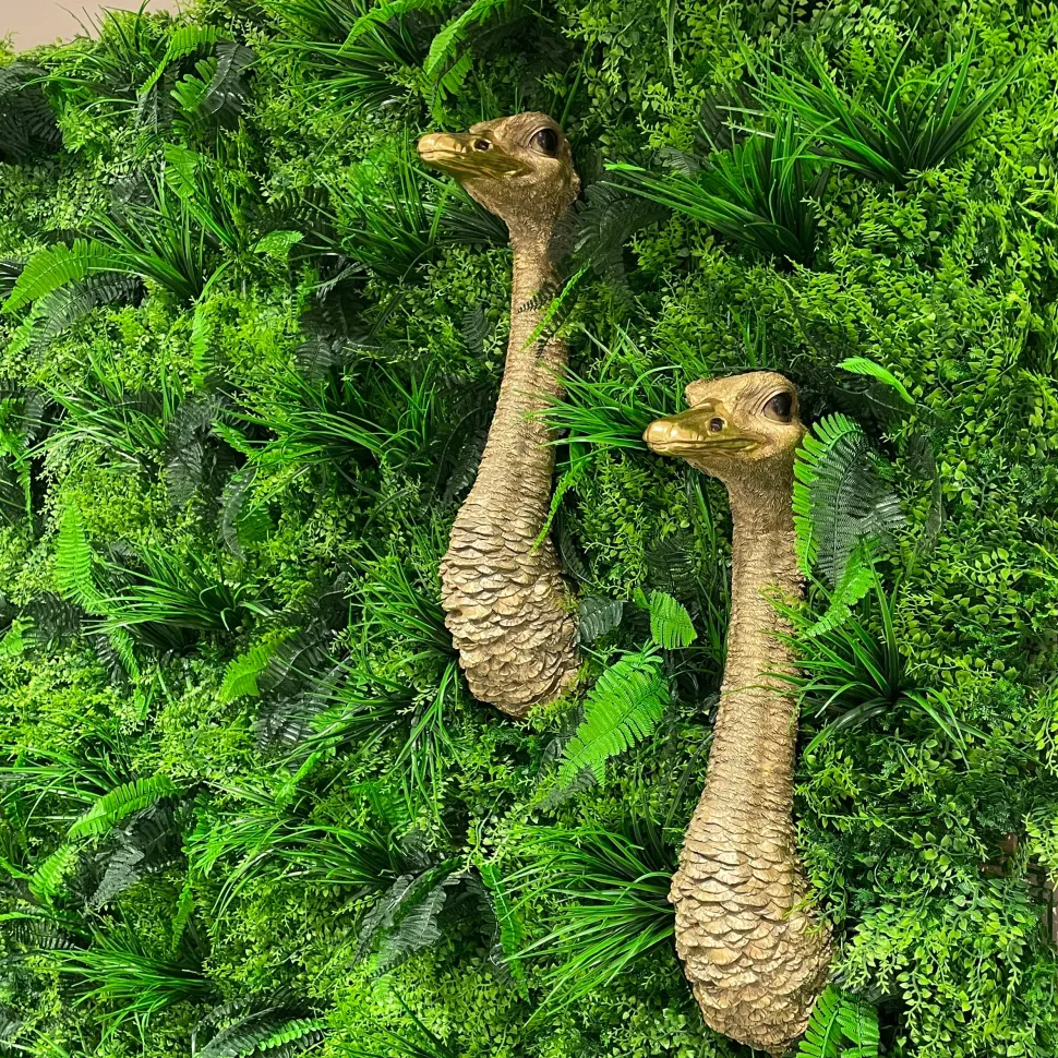 Hvem holder øje med hvem? Denne skønne guldfarvede struds skulptur stikker sin lange hals frem og skaber et humoristisk blikfang.