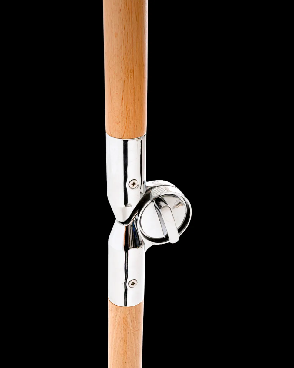 Den solide mast i massivt bøgetræ sikrer god stabilitet og tilfører designet et naturligt og eksklusivt touch. Med en diameter på 200 cm giver parasollen generøs skygge og skaber et behageligt opholdssted på solrige dage.