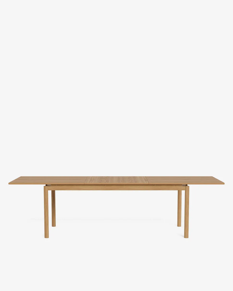 Tucson spisebord – let design med butterfly-udtræk. Tucson udvides nemt fra 200 til 290 cm og kombinerer elegant eg finer med praktisk bordplads til både hverdag og gæster.