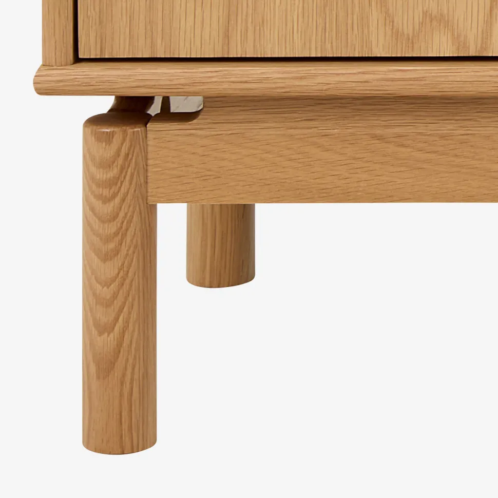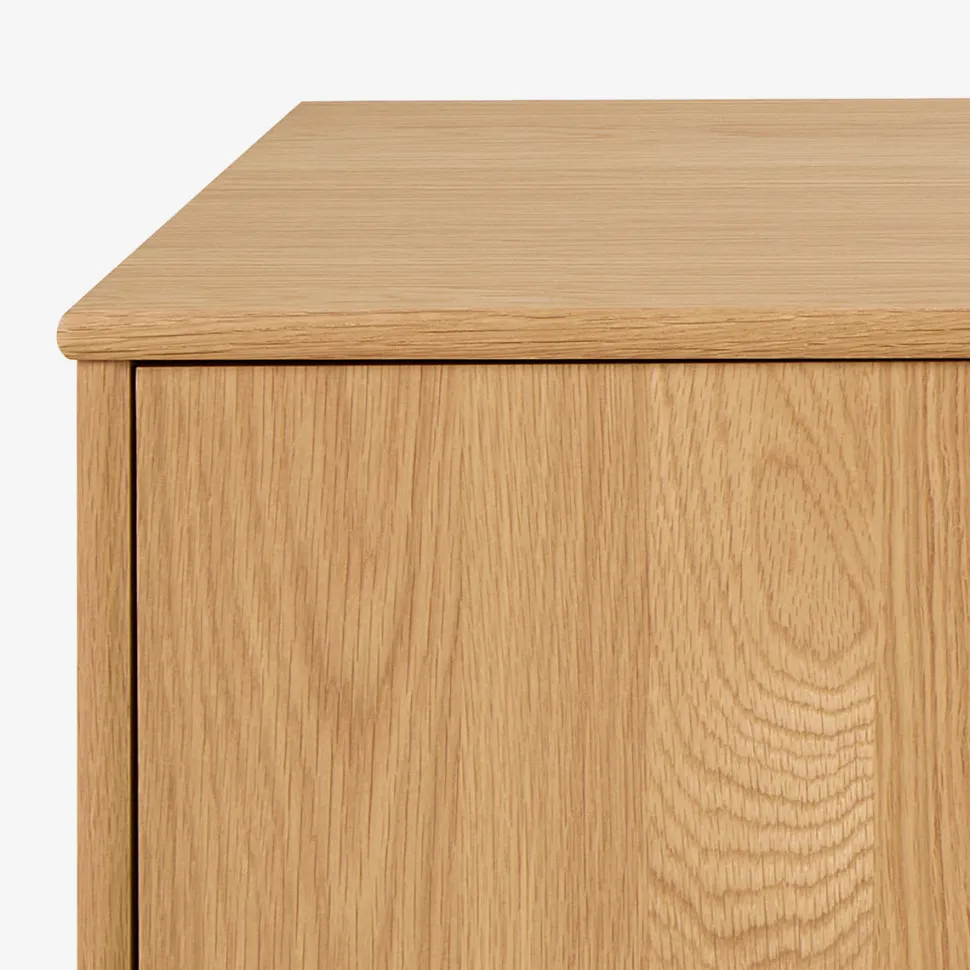 Tucson TV-bordet kombinerer funktionalitet med et let og moderne formsprog. Front og bordplade er udført i eg finer, som tilfører varme og naturlig struktur til indretningen.