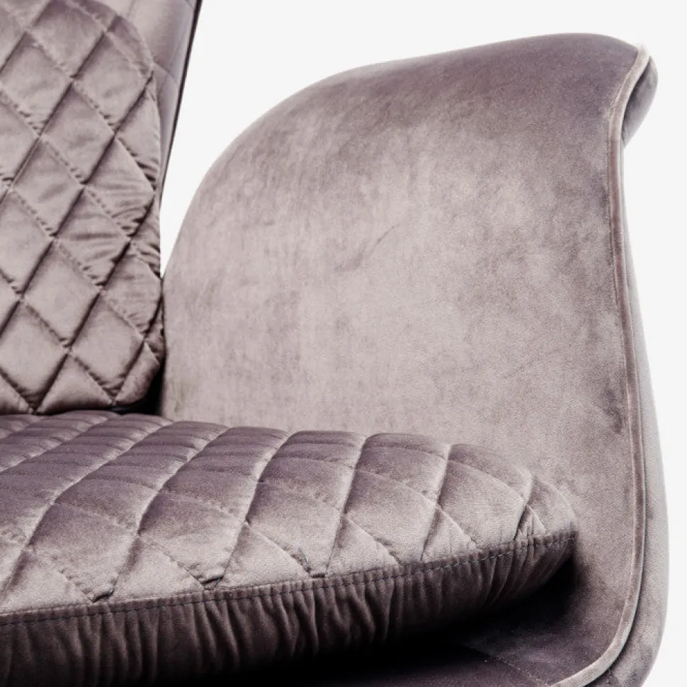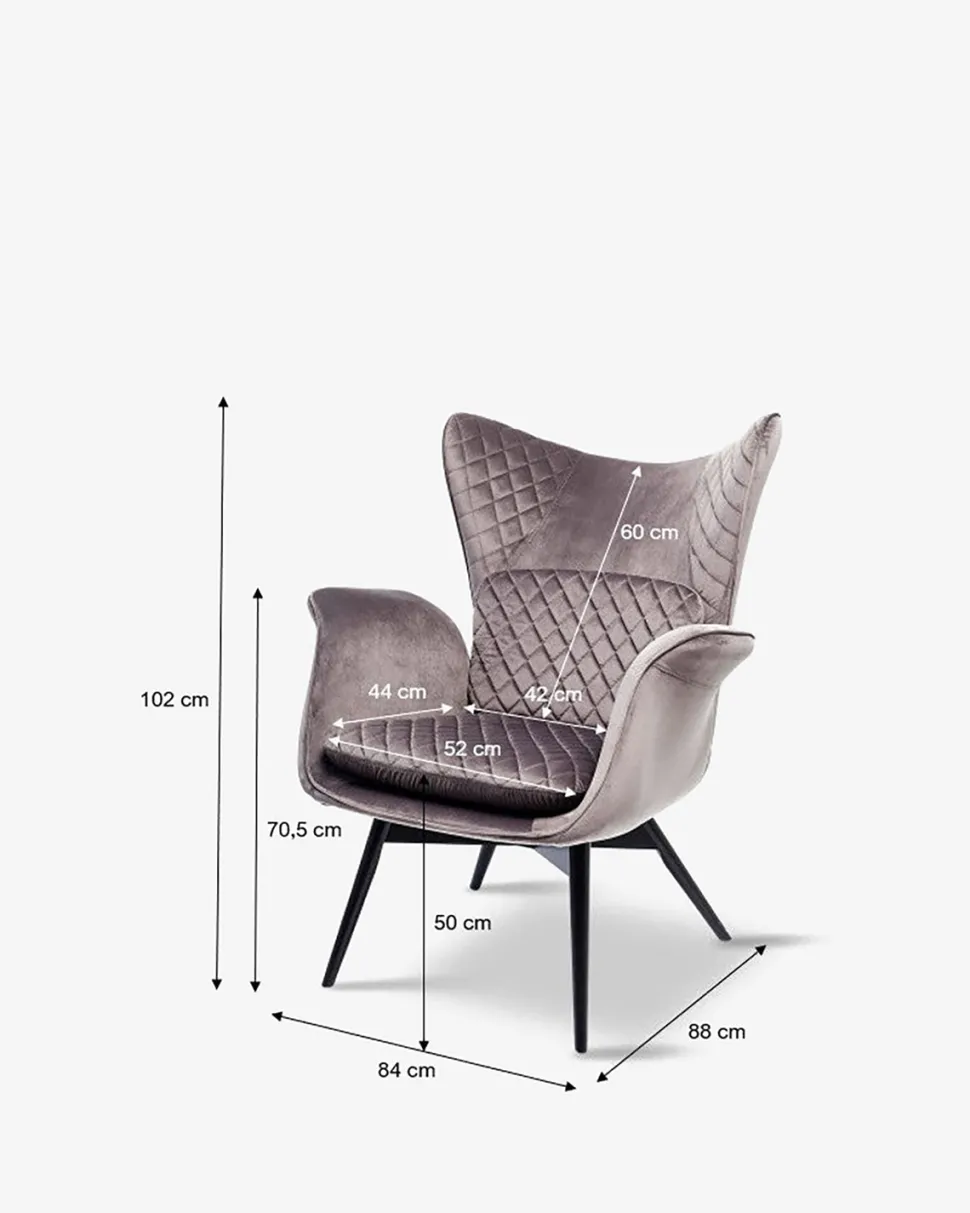 Stolen får ydermere et næsten dramatisk look med harlekinmønster i det grå velour, samt det sortmalede stel.