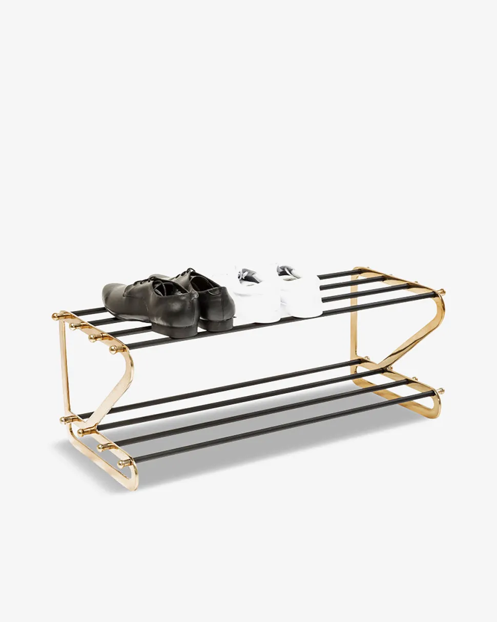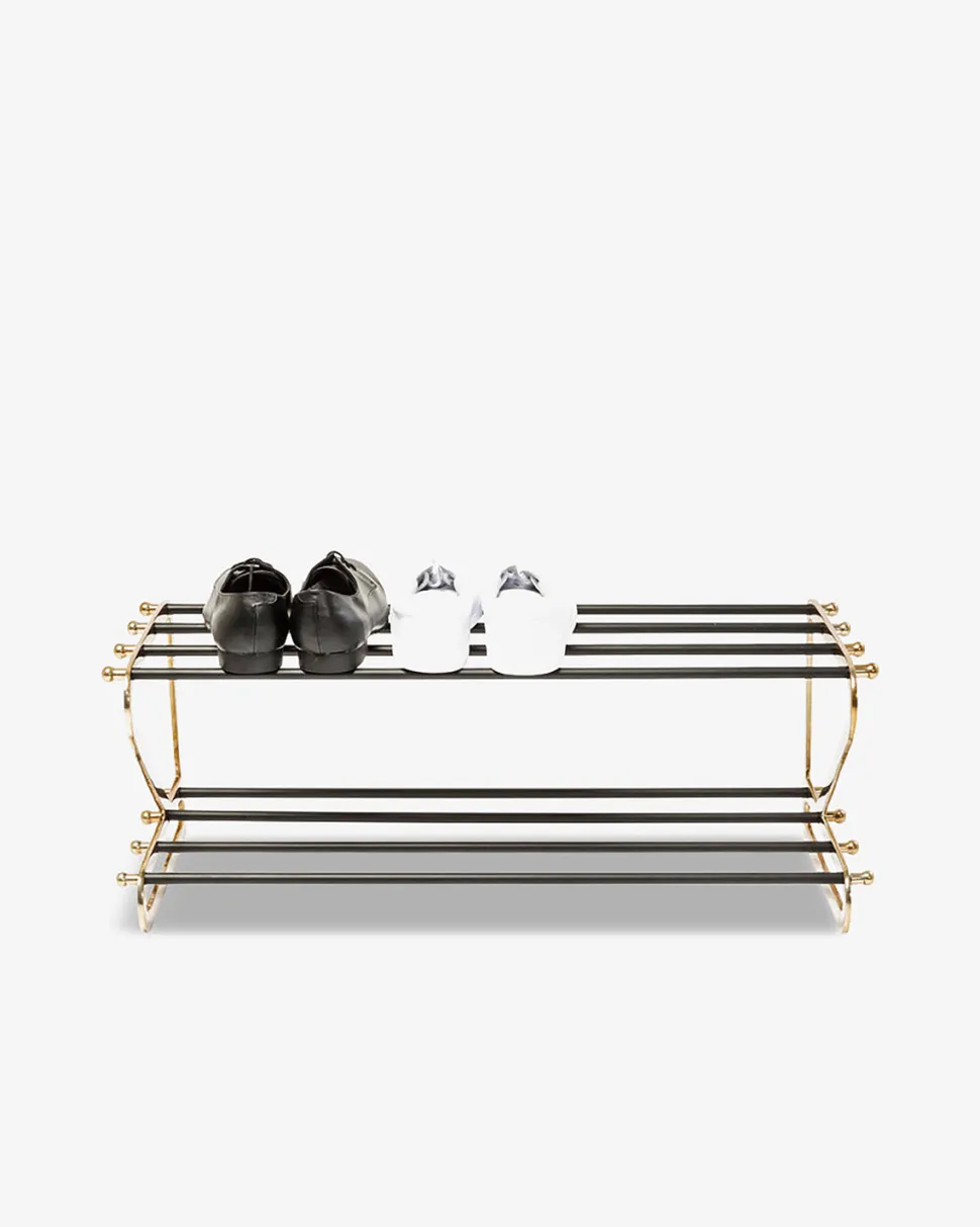 Dekorativ Walk skoreol i sort og messing med 2 hylder. Der er plads til 6 par sko i alt.