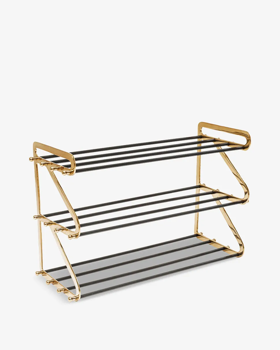 Dekorativ Walk skoreol i sort og messing med 3 hylder. Der er plads til 9 par sko i alt.
