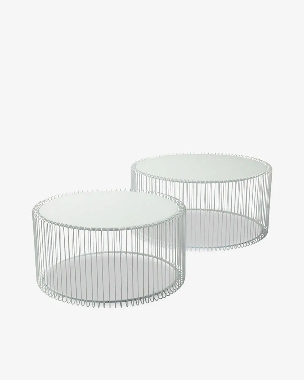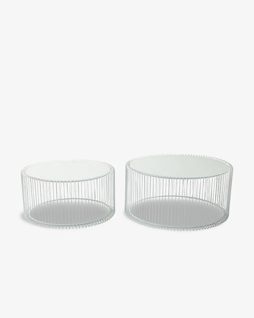 Wire bordsæt med hvidt stålstel og glasplade. Smukke borde i lækkert design, der skaber et stilrent udtryk.