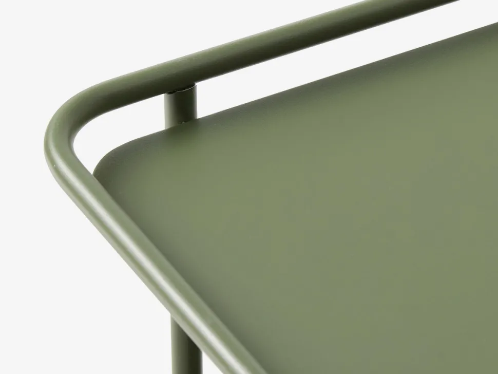 Den aflange form passer perfekt til sofaopstillinger, hvor der ønskes mere bordplads. Den olivengrønne farve tilfører et roligt og moderne udtryk med masser af personlighed.