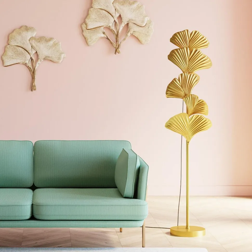Moderne flot gulvlampe i guld.